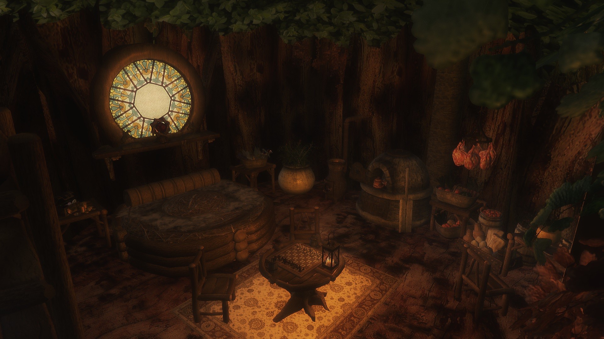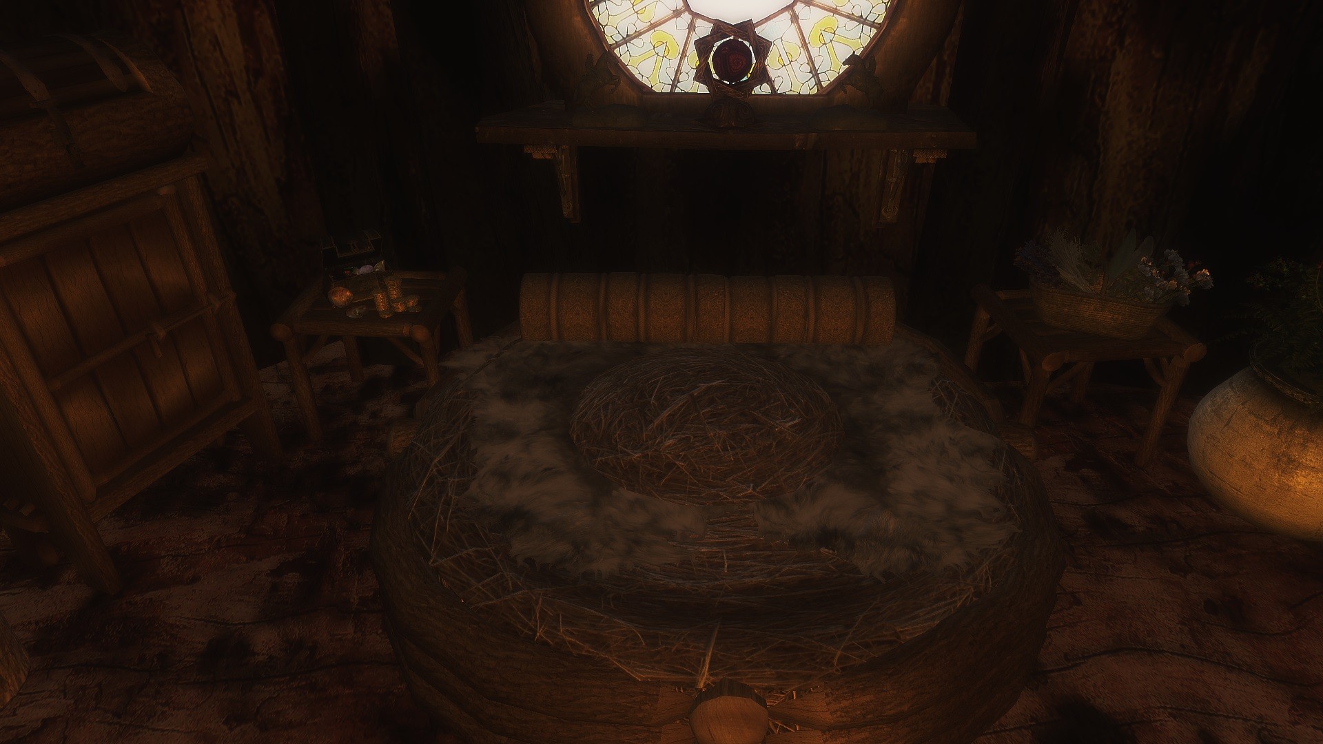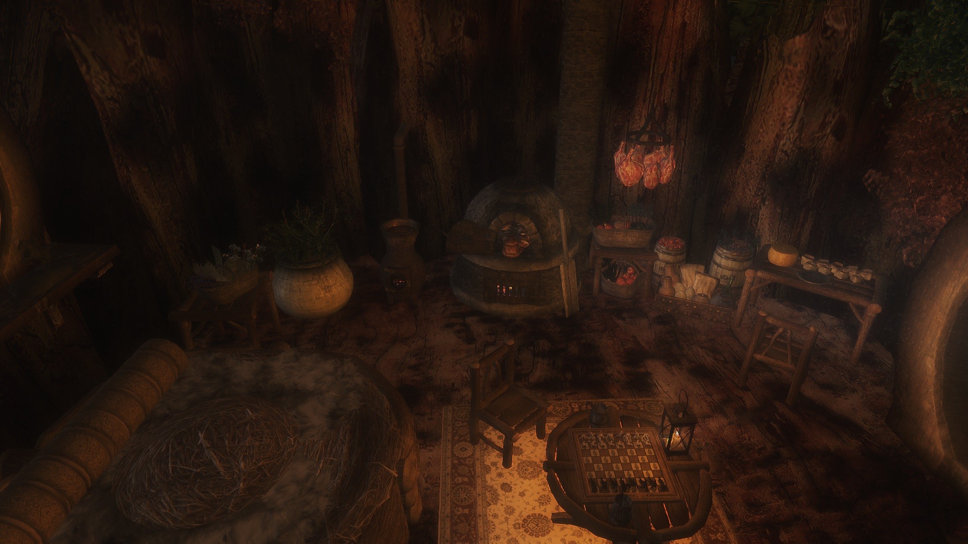 - Новые декоративные предметы: дымящая чаша с фимиамом, новые бочки на кухне, мешочки со специями, святилище Аркея, коврик.