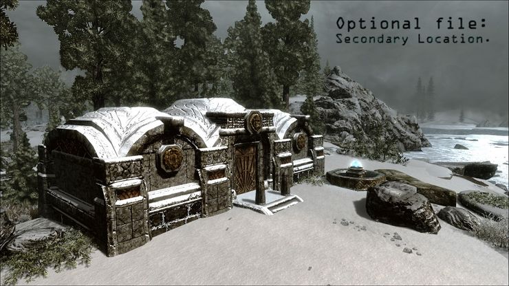 В архиве есть дополнительный файл Dwemer Abode 1-0, дообавляющий точно такой домик, но только на берег озеро Илиналты. Можно ставить как оба, а можно лишь один.