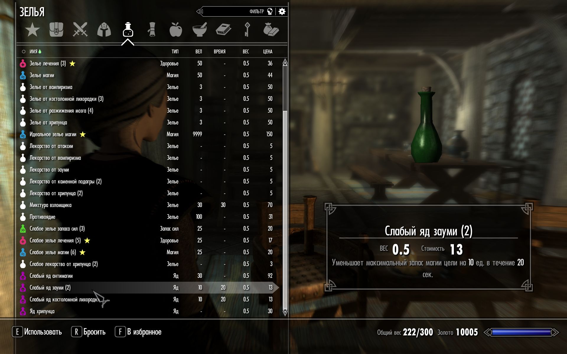 в) Яды: Также можно купить или сделать самому из тех же ингредиентов яды, действующие на NPC также, как эффекты соответствующих болезней. Подробности можно прочитать в книге "Анатомия Серого Лиса".