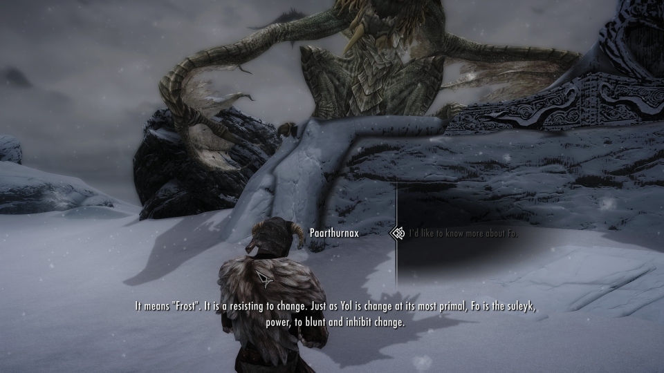 Вам никогда не казалось, что медитация над тремя словами силы: Фус, Файм и Йол ограничивает Довакина от истинных знаний, которыми обладает глава Седобородых, старейший из драконов Партурнакс? Не казалось ли вам странным, что по сюжету дополнений Dragonborn и Dawnguard, где вы изучаете новые крики, наделяющими вас особыми способностями, вы не могли их раскрыть в полной мере? Почему только Фус, Файм и Йол заслуживают того, чтобы познать их концепцию полностью, а оставшиеся Слова Силы остались в стороне? Этот мод позволяет вам углубиться в познаниях Ротмулаг и поразмышлять над 27 словами, помимо стандартных: Фус, Файм и Йол. Не только Партурнакс размышляет над Словами Силы, Одавинг и Дюрневир также умеют это делать, и готовы обучить Последнего Драконорожденного, который встал на Путь Голоса или...поддался высокомерию власти, которая может погубить его, как это случилось с Мираком.