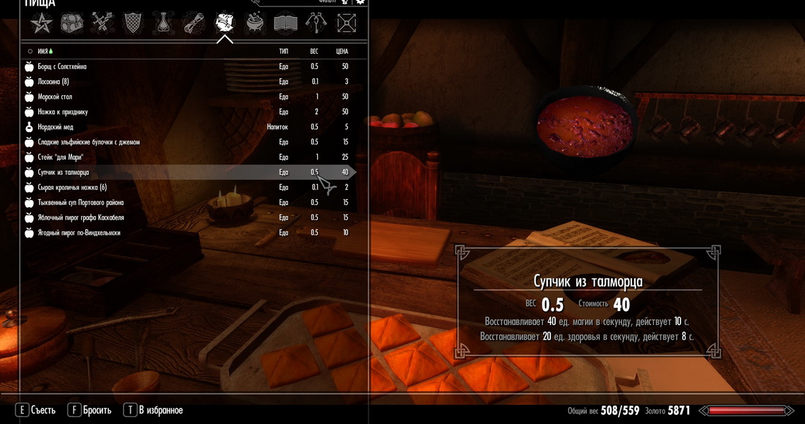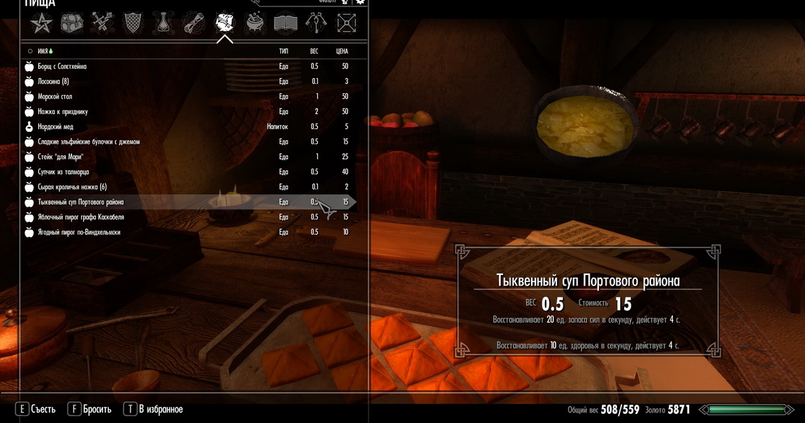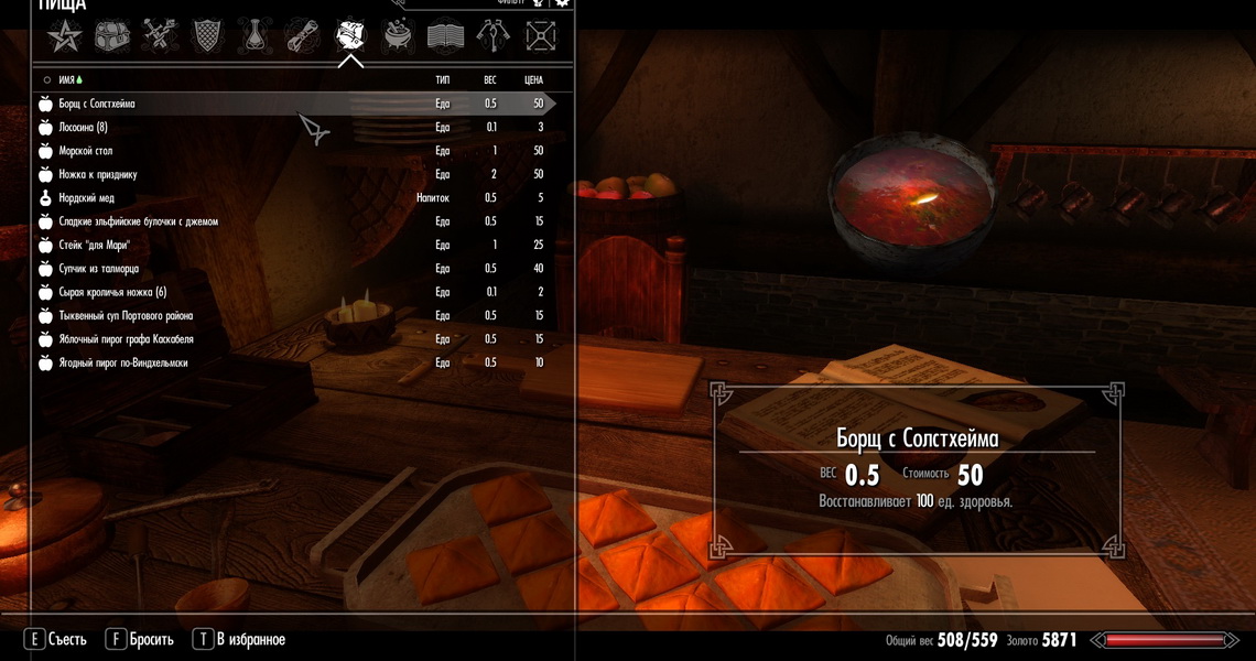Ингредиенты для новой пищи можно найти в бочках с продуктами и у трактирщиков.