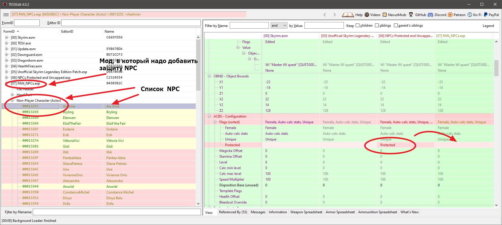 Перенос изменений из NPCs Protected Redux в другие моды с помощью Tes5Edit/SSEEdit.