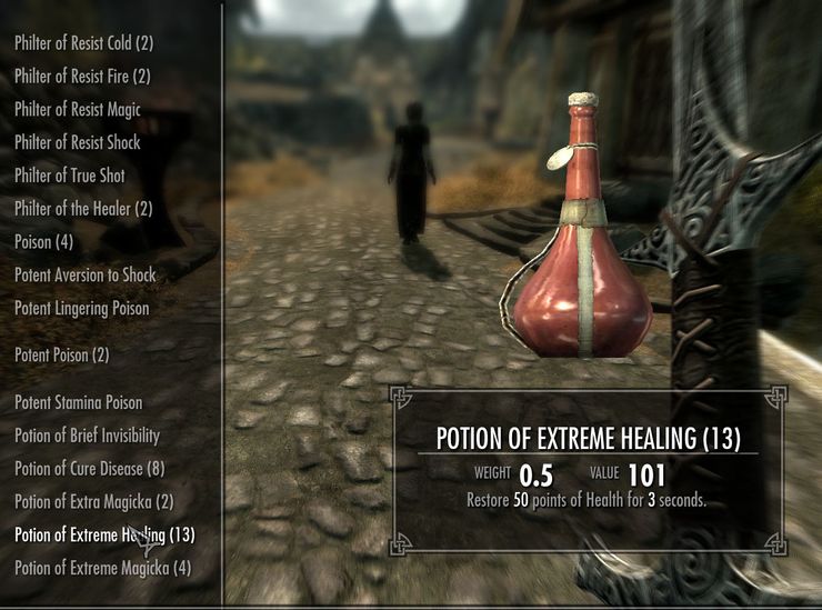 Основная цель мода - убрать мгновенное восстановление здоровья, запаса сил и магии, при употреблении зелий. А также изменить вес зелий для большей реалистичности. Изменения затрагивают все зелья. Мод может быть использован как упрощенная замена глобальным модам на переработку алхимии потому как имеет возможность комбинации зелий, которая напрямую зависит от уровня персонажа. Чем он выше, тем больше комбинаций доступно. Зелья комбинируются в котле.