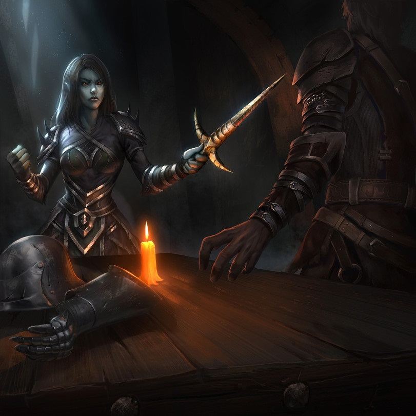 «Мы Народ Корня, который теплокровные называют „аргонианами“. Мы отлично себя чувствуем на воде и на суше, и в наших жилах течёт магическая кровь. На нашей родине мы охотимся, чтобы выжить. Мы властелины болот. Нас поработили тонкокожие враги, и мы тайно убиваем их с помощью стали и заклинаний».