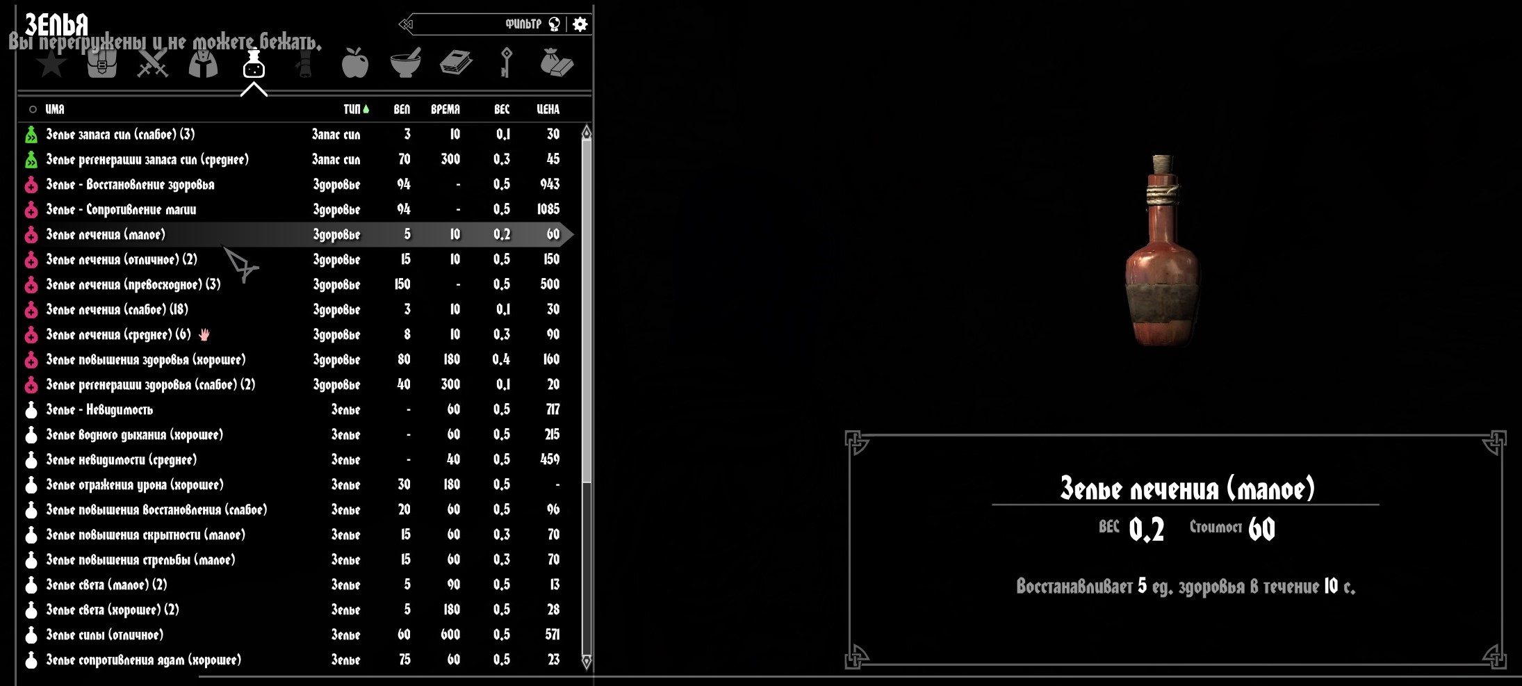 Теперь зелья восстановления Здоровья, Маны и Выносливости восстанавливают атрибут не сразу, а в течении 10 секунд. Каждое зелье имеет свои показатели качества, чем лучше зелье, тем эффективнее оно восстанавливает здоровье за свой период времени.