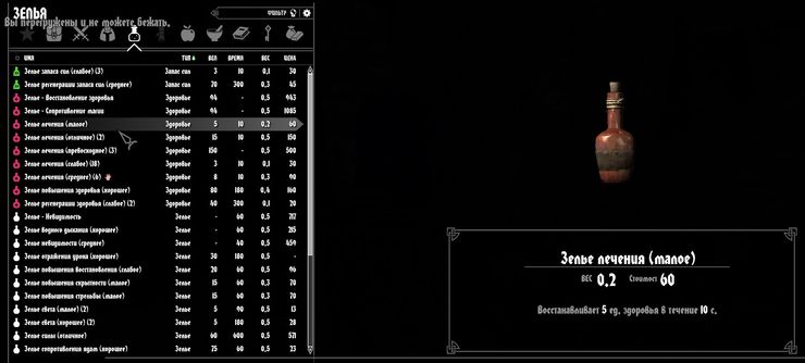 Переработан так же эффект идеальных зелий восстановления, теперь эти бутыльки не такие читерные как в оригинале, но их наличие так же может спасти вашу жизнь. Теперь они восстанавливают атрибут не на 99999, а на 150 единиц, но так же мгновенно.