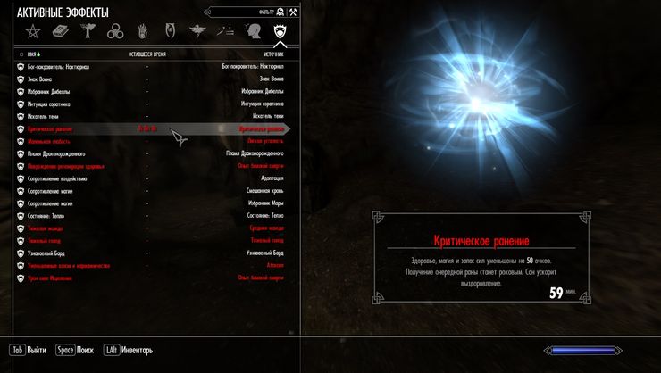 - Эффект большого количества спиртного после пьянки и «естественные» причины смерти продолжают работать (т. е. замерзание во Frostfall, смерти от падения и тому подобное).