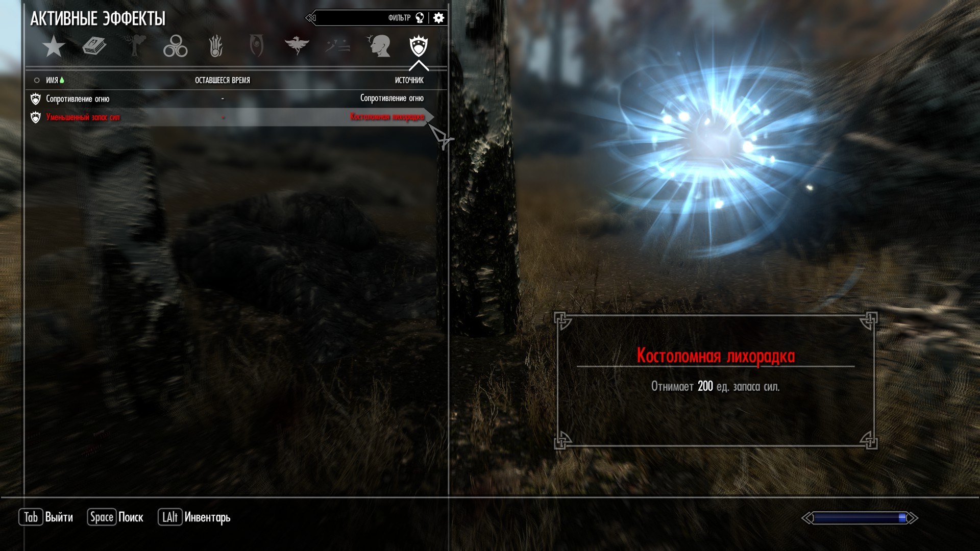 Болезни которые снижают регенерацию маны и стамины, в два раза, я не стал менять, они и так достаточно сильны.