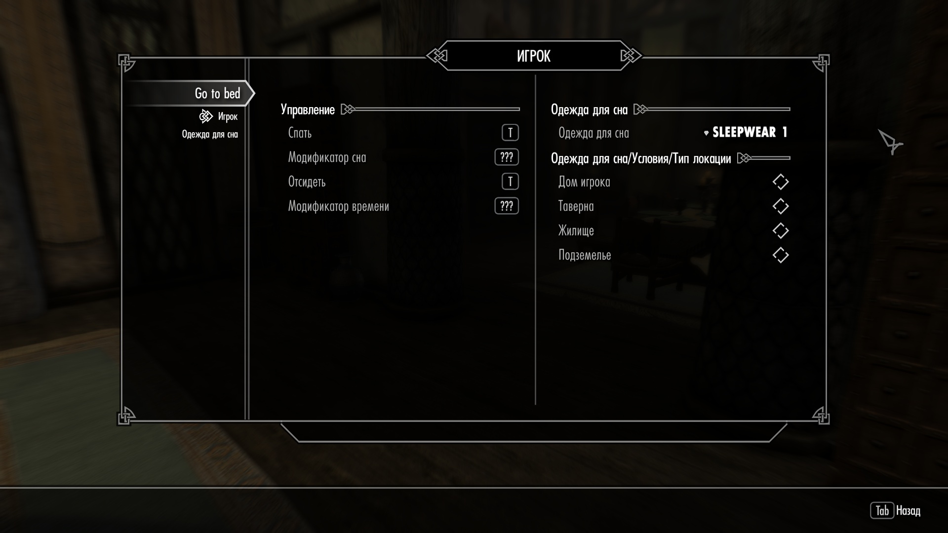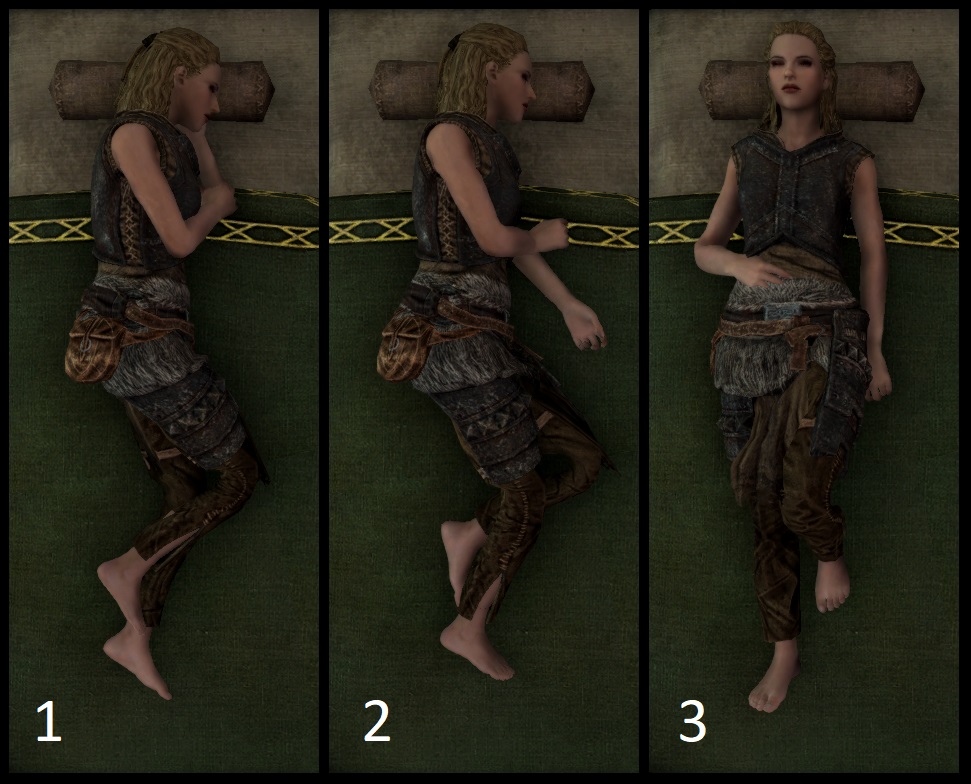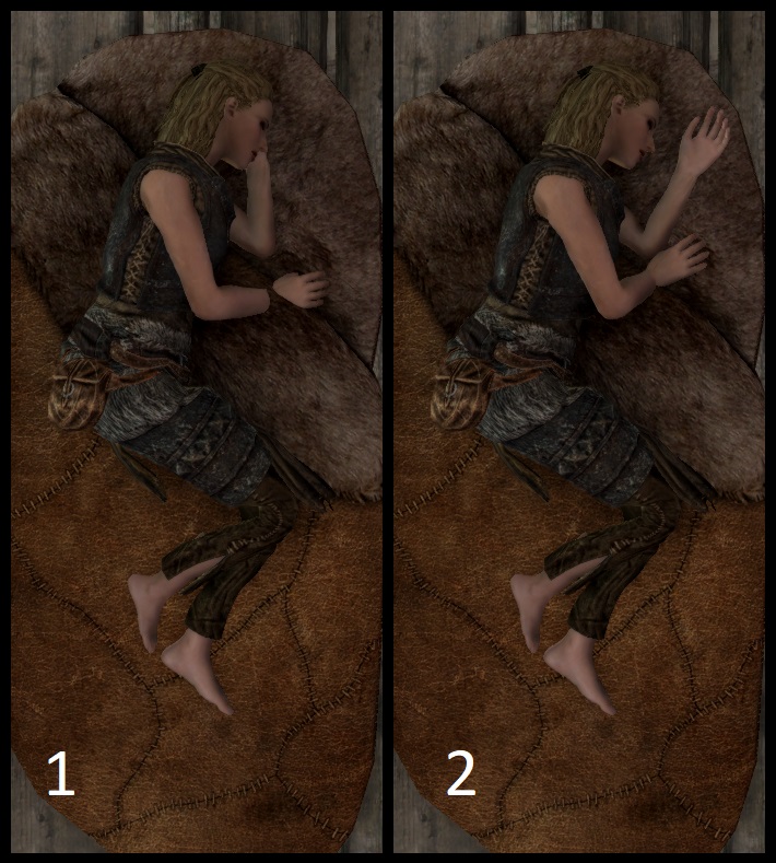 Этот мод позволяет персонажу игрока лечь в кровать чтобы спать вместо простого ожидания в Skyrim LE/SE. Теперь после активации кровати игрок ложится на неё. После чего надо нажать клавишу ожидания (Т по умолчанию) чтобы открыть меню сна.