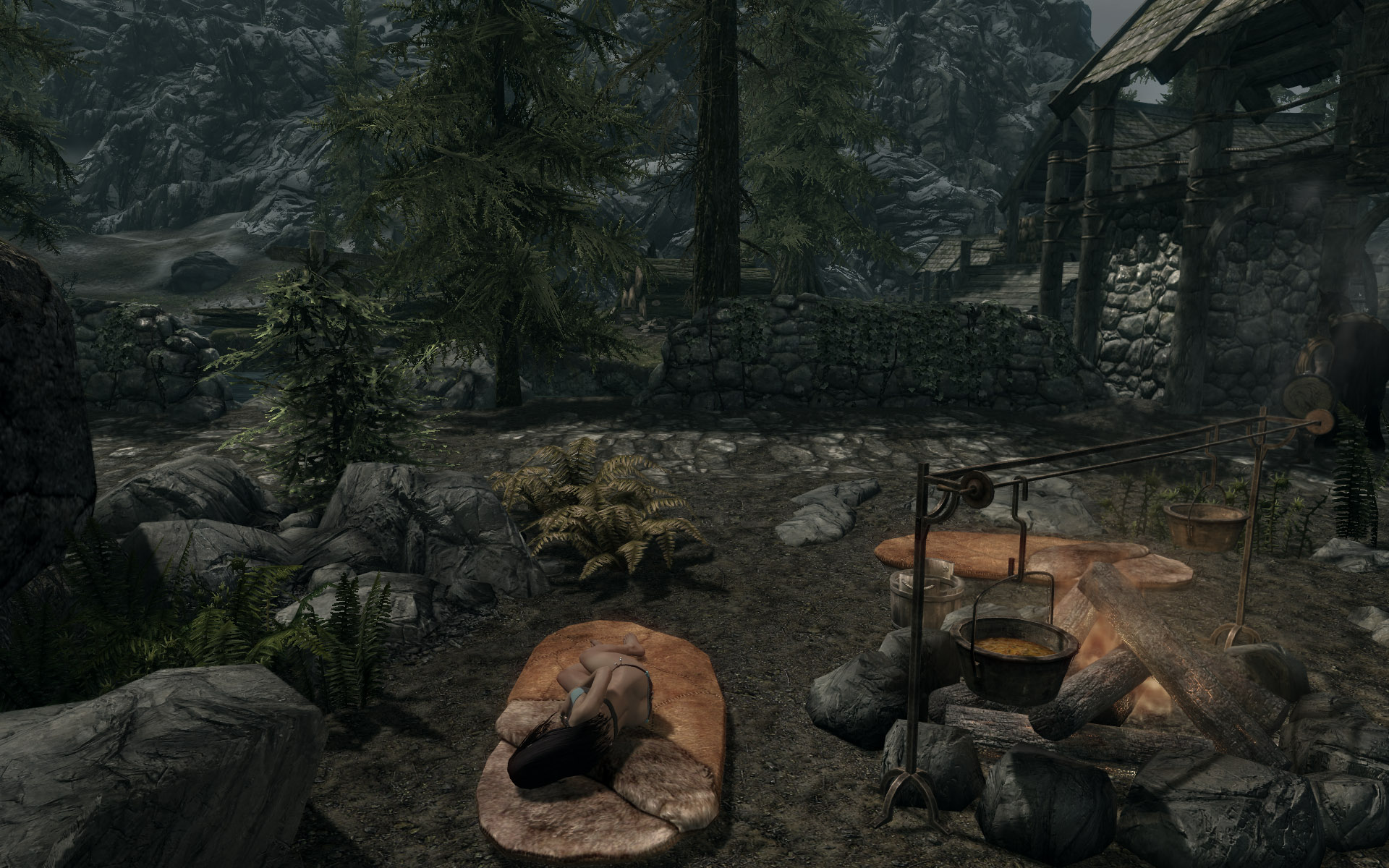 Здесь вы увидите меню, которое позволит вам установить, в какой одежде и как вы будете спать (по умолчанию - в текущей одежде/броне) и сделать то же самое для ваших спутников.