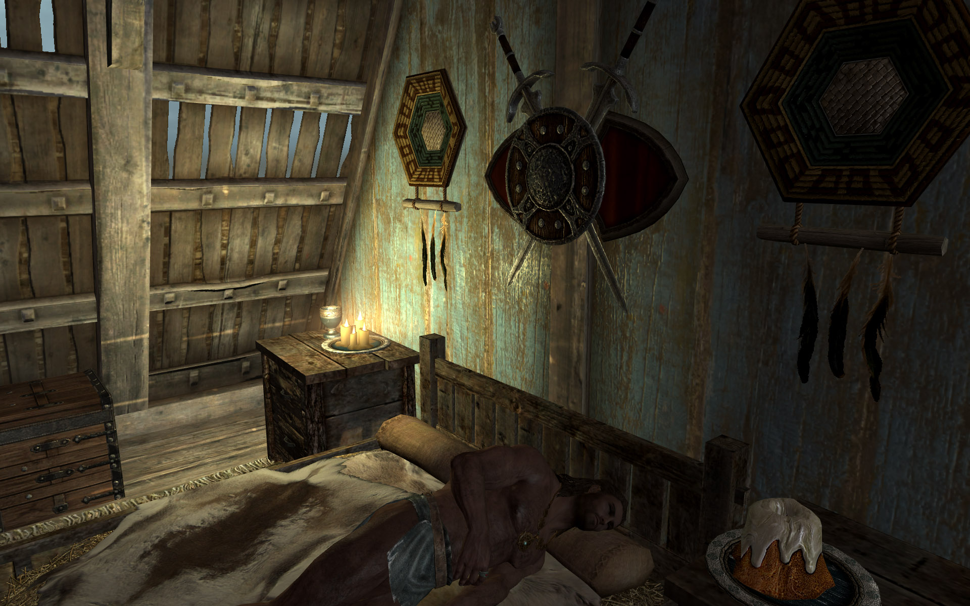Этот мод дает вам возможность посмотреть со стороны на себя спящего. Автор пока не сделал возможность видеть. как вы ложитесь спать, в этот момент происходит только постопенное затенение, так что по умолчанию вы можете лицезреть себя спящим на кровати только перед пробуждением и видеть, как вы лениво встаете с постели после сна.