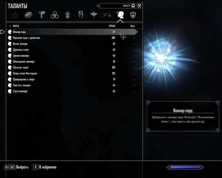 Обратите внимание, что если вы обращаетесь в вампира уже будучи оборотнем, то вам необходимо хотя бы один раз превратиться в форму вампира-лорда для корректной работы плагина! Условие не распространяется только на превращение при прохождении квеста