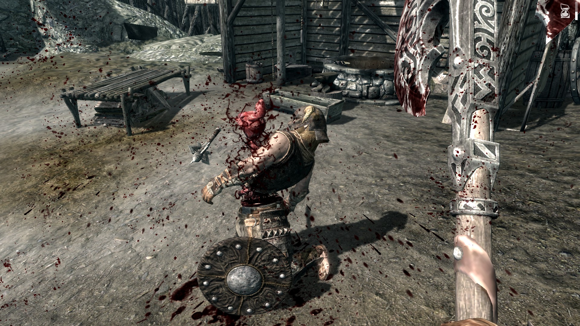- Потрошение, расчленение, разрезание напополам возможно только с персонажами одетыми в следующие виды брони: меховая, эльфийская, сыромятная, клепаная, имперская, железная, броня Изгоев, броня Братьев Бури, броня стражников, мантии некромантов и чародеев.