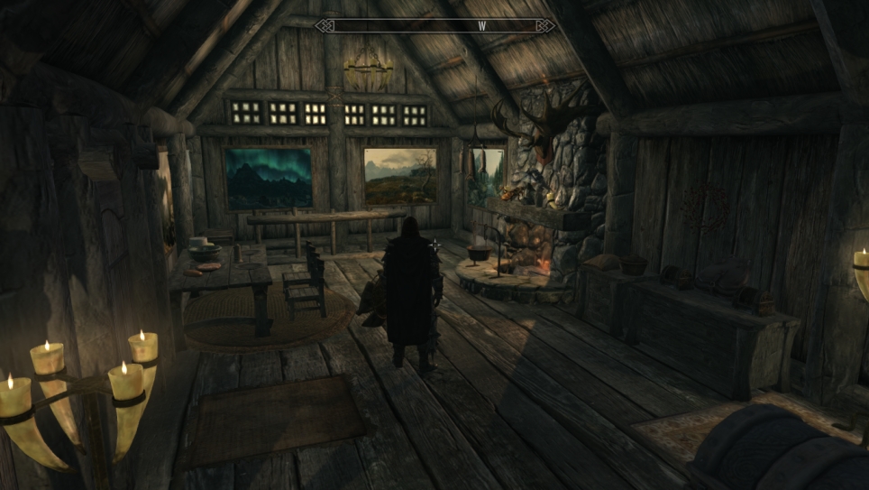 Домик максимально прост и удобен, имеет множество контейнеров для хранения вещей, а в подвальном помещении есть даже небольшой кабинет с минибиблиотекой и несколькими стендами для оружия. Также в подвале имеется все необходимое для крафта и улучшения. Сетку путей прокладывал вручную, добавил много маркеров, так что жена и компаньоны будут чувствовать себя уверенно. Также дом имеет свое музыкальное оформление, в котором использованы этнические скандинавские мотивы. Картины на стенах можно менять (читайте инструкцию в папке Patterns архива с игрой). В виде небольшого бонуса вы можете тушить и разжигать очаг, подметать коврики. Еще в доме есть скрытый контейнер - тайник фермера, в котором находится амулет хозяина фермы. Он необходим для того, чтобы начать разговор с утонувшей дочкой фермера. Тайником можете пользоваться, а амулет рекомендую вернуть девушке (подробнее читайте в разделе «Хозяйка»).