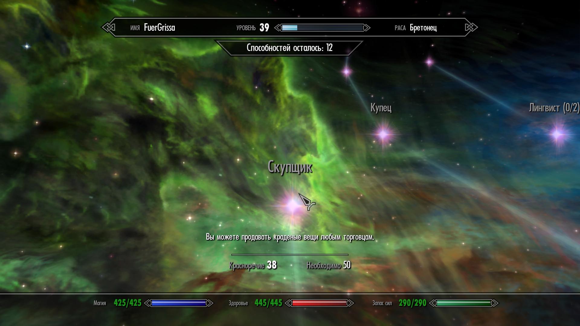 Реорганизация: "криминальные" перки (Подкуп стражи и Скупщик) вынесены влево, перки торговца (Очарование, Купец, Вкладчик, Великий торговец) в центре, а "разговорные" (Убеждение и Запугивание) справа. Отныне никакой мешанины.