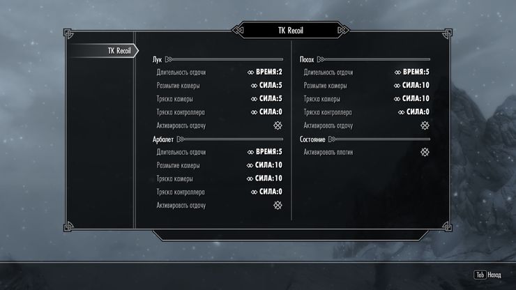 Она позволяет игроку почувствовать отдачу оружия при выстреле из лука, арбалета или посоха. Эффект отдачи реализован задержкой времени после выстрела, тряской и размытием экрана.