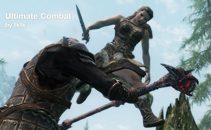 Требования: Skyrim, SKSE, SkyUI, FNIS для смены анимации уклонения.