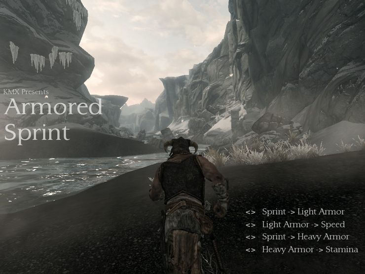 Данный мод позволит посредством бега (точнее спринта) развивать навыки ношения легкой и тяжелой брони, а также получать специфические бонусы: