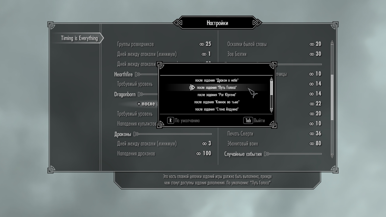 Требования: Skyrim, Dawnguard, Hearthfire, Dragonborn,