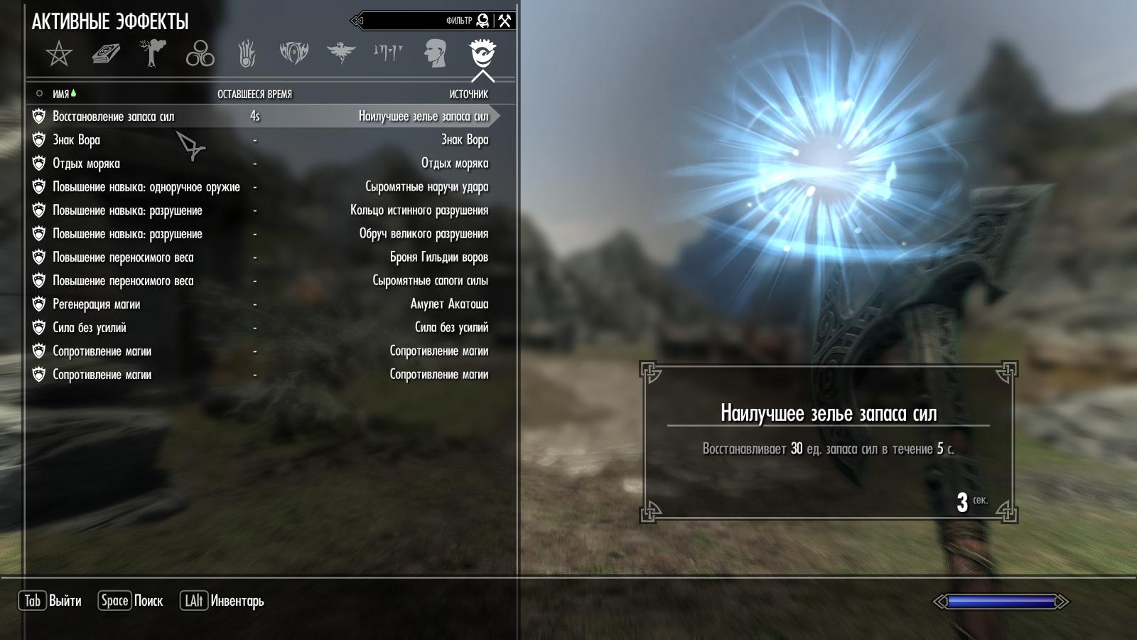 ---ВАЖНО: при употреблении нескольких однотипных зелий подряд, эффект не будет складываться, а будет заменяться следующим. Например: выпив сильное зелье, а затем слабое, эффект будет только от последнего, то есть от слабого зелья. Узнать какое зелье действует в данный момент можно в разделе "активные эффекты".