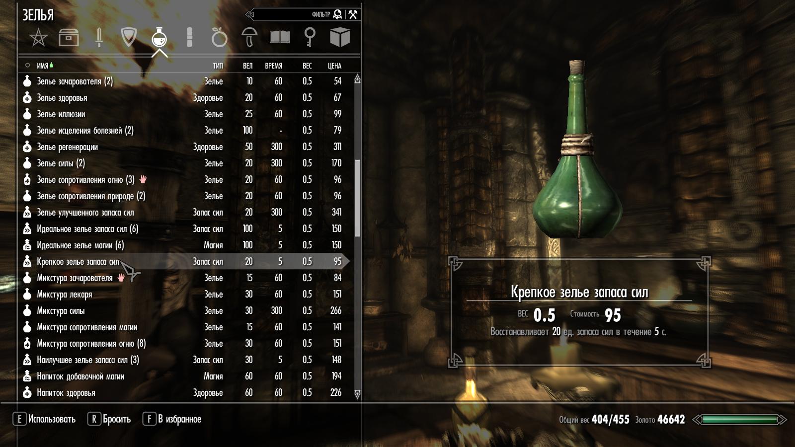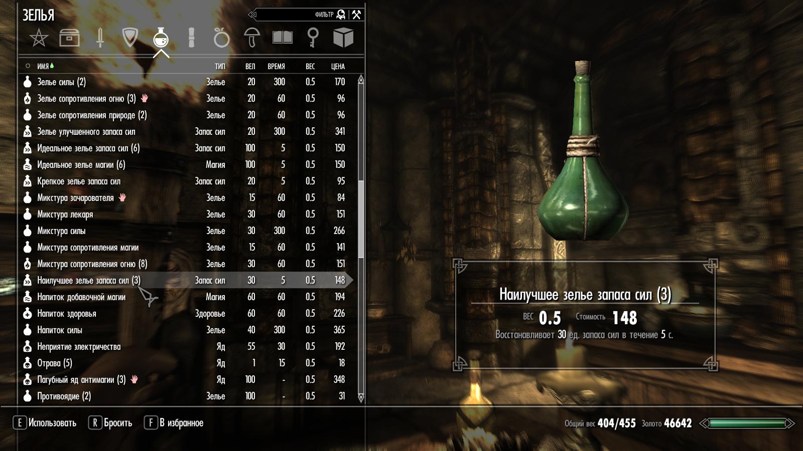 ---Порядок загрузки: ставить только после модов, влияющих на алхимию (в том числе и на изменение веса зелий и ингредиентов).