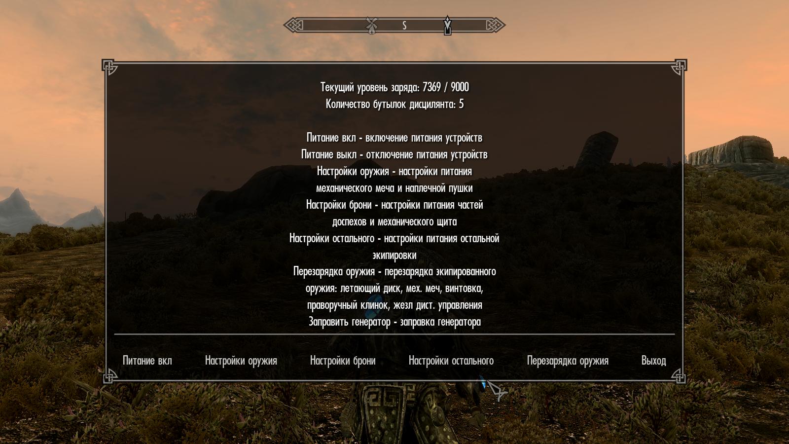 Этот мод кардинально меняет общую механику игры, добавляя новые двемерские предметы, заклинания, формы оборотней и тд. Чтобы начать мод, зайдите в любое помещение\пещеру\закрытый город, и дождитесь соответствующего сообщения. После этого вам в инвентарь добавится кольцо, через которое можно выйти в меню настройки мода.