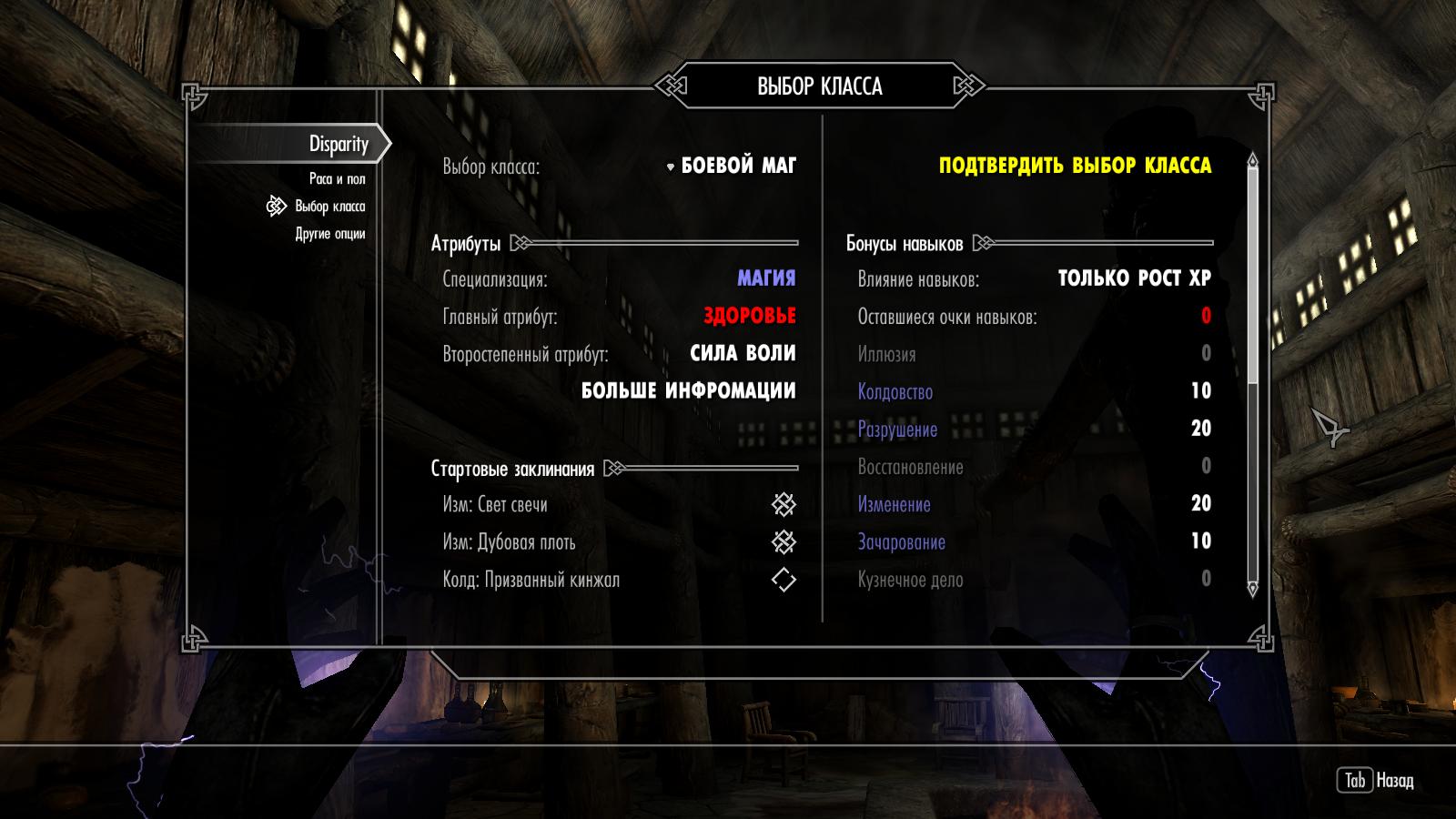 Каждая раса на начало игры получает 45 очков навыков, которые распределяются между главными и второстепенными навыками. Также расовые бонусы способствуют ускоренному росту навыков. По умолчанию эта опция отключена, но вы можете включить ее в меню настройки мода.
