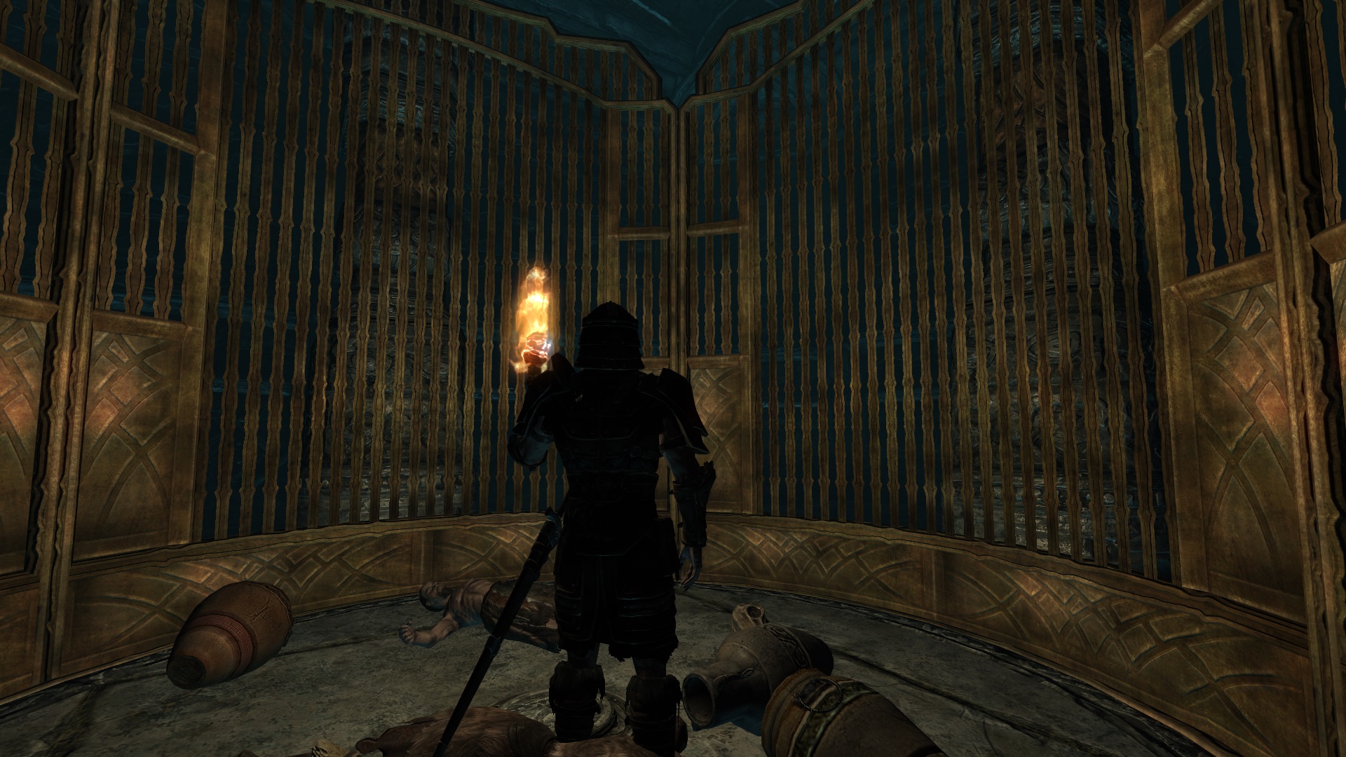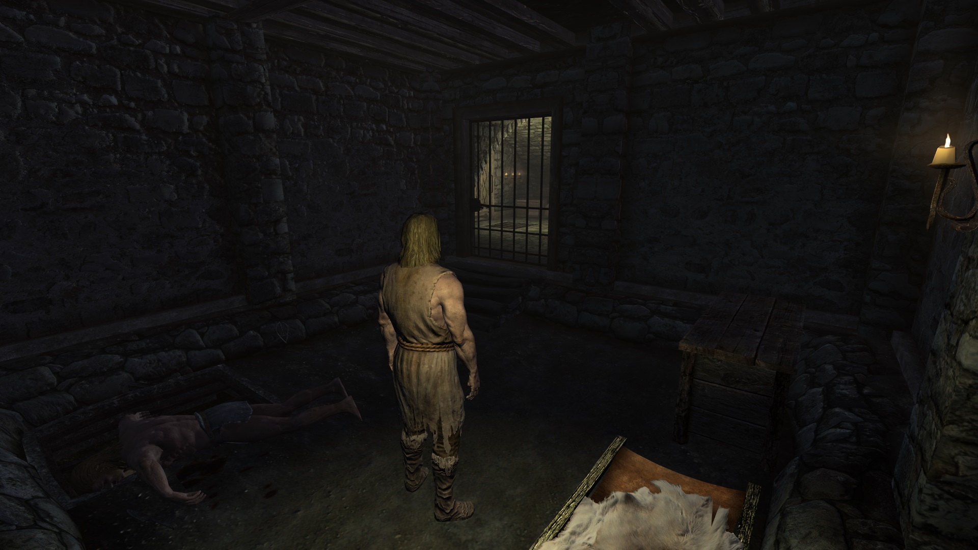 Вы попадаете в одну из городских тюрем Скайрима и можете отбыть в ней срок или попытаться сбежать из нее, имея на руках десяток отмычек. Во втором случае не забудьте забрать вещи из тюремного сундука.