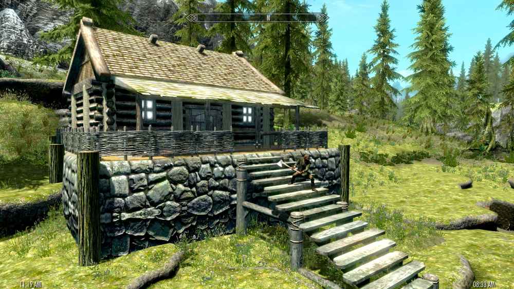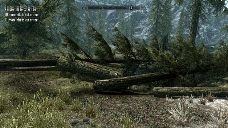 Вы сможете срубить почти все деревья, которые есть в Скайриме. В их состав входят: сосны, березы/осины, мертвые деревья, деревья вырванные с корнем и некоторые большие кусты. После того как вы срубили дерево, вы его можете разрубить на остальные части, чтобы получить ветки и бревна. Также вы сможете создавать различные предметы на верстаке, в этот состав входят: мебель, стены, крыши, верстаки, посуда, кровати, костры, потолки, лестницы и много чего еще. Чтобы размещать предметы вам понадобится мод Jaxonz Positioner. Также вы можете разбирать броню, одежду на ткани и на остальные детали. Чтобы начать рубить деревья, вам нужно на верстаке сделать Топор Дровосека и после этого вы сможете начать рубить деревья и создавать всякие различные предметы или даже дома.