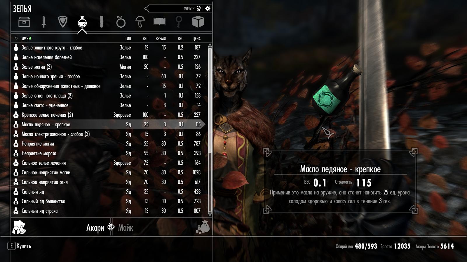 Яды погибели орков, каджитов, людей, эльфов и аргониан.