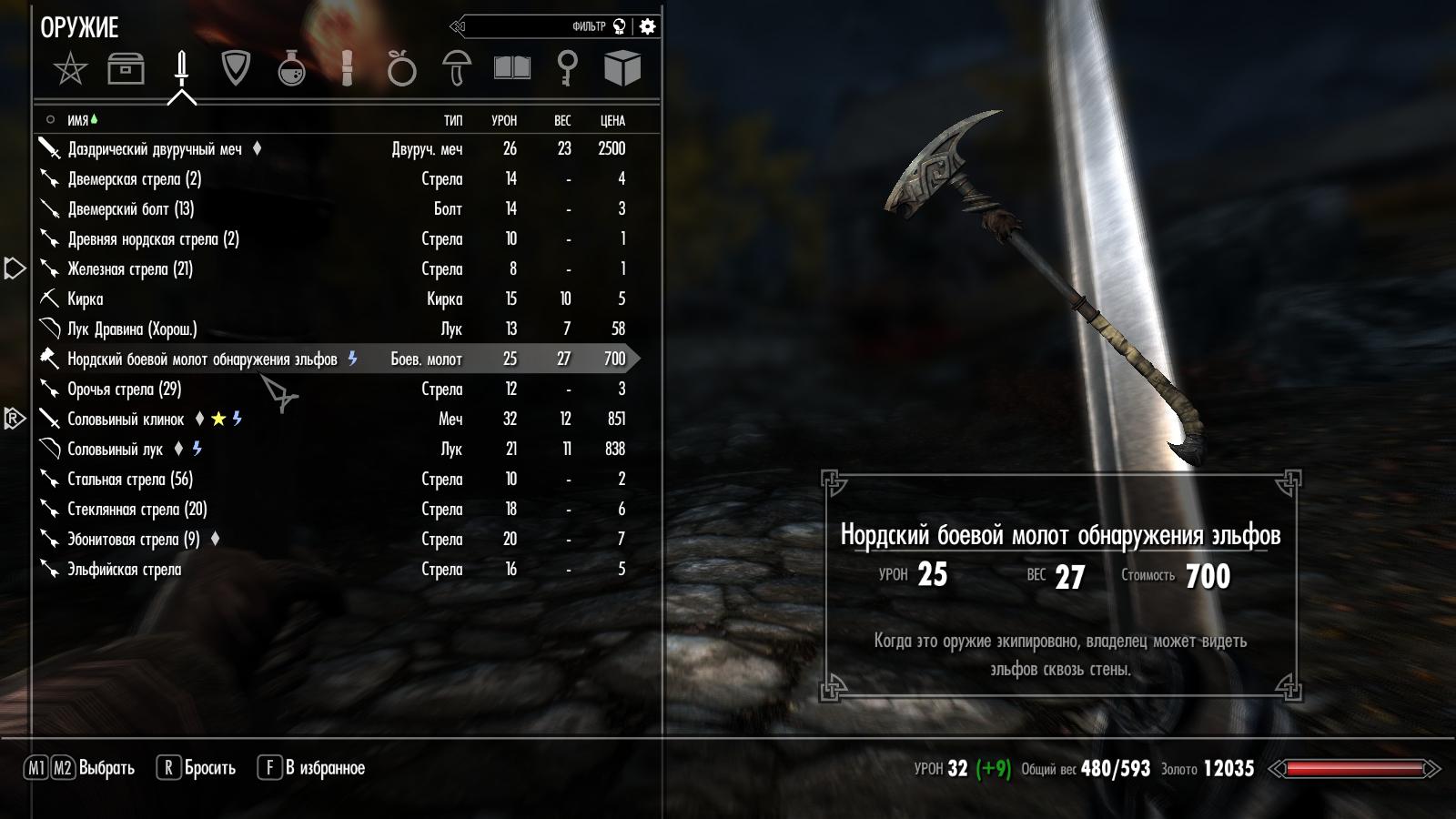 Приведены как уникальные образцы оружия, так и зачарования, накладываемые на практически все ванильные виды оружия.