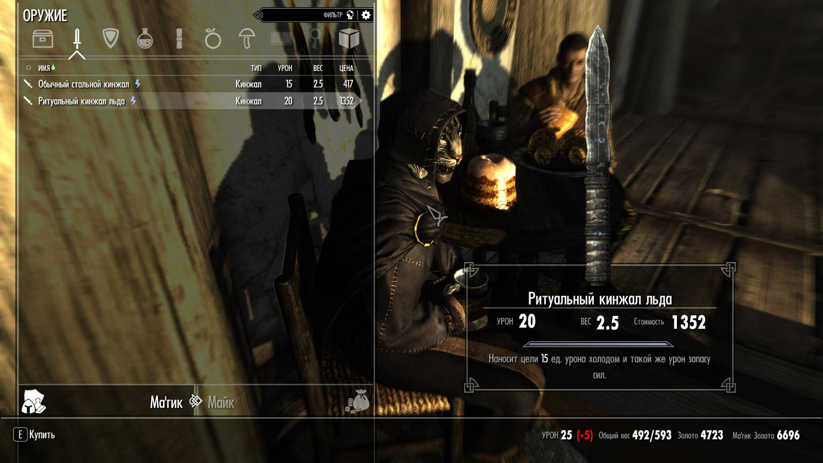Весит меньше и наносит больше урона чем обычный скимитар. Имеет шанс ошеломить цель.
