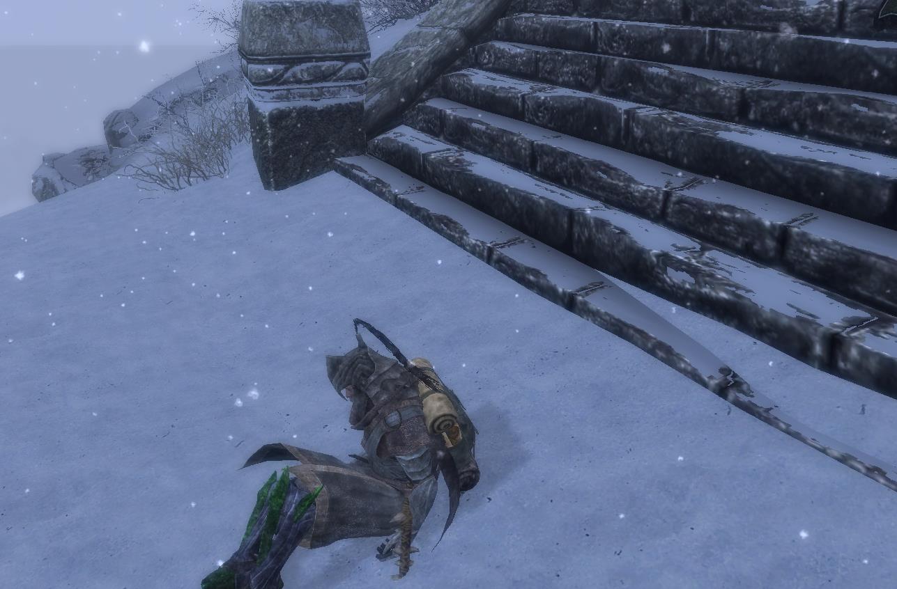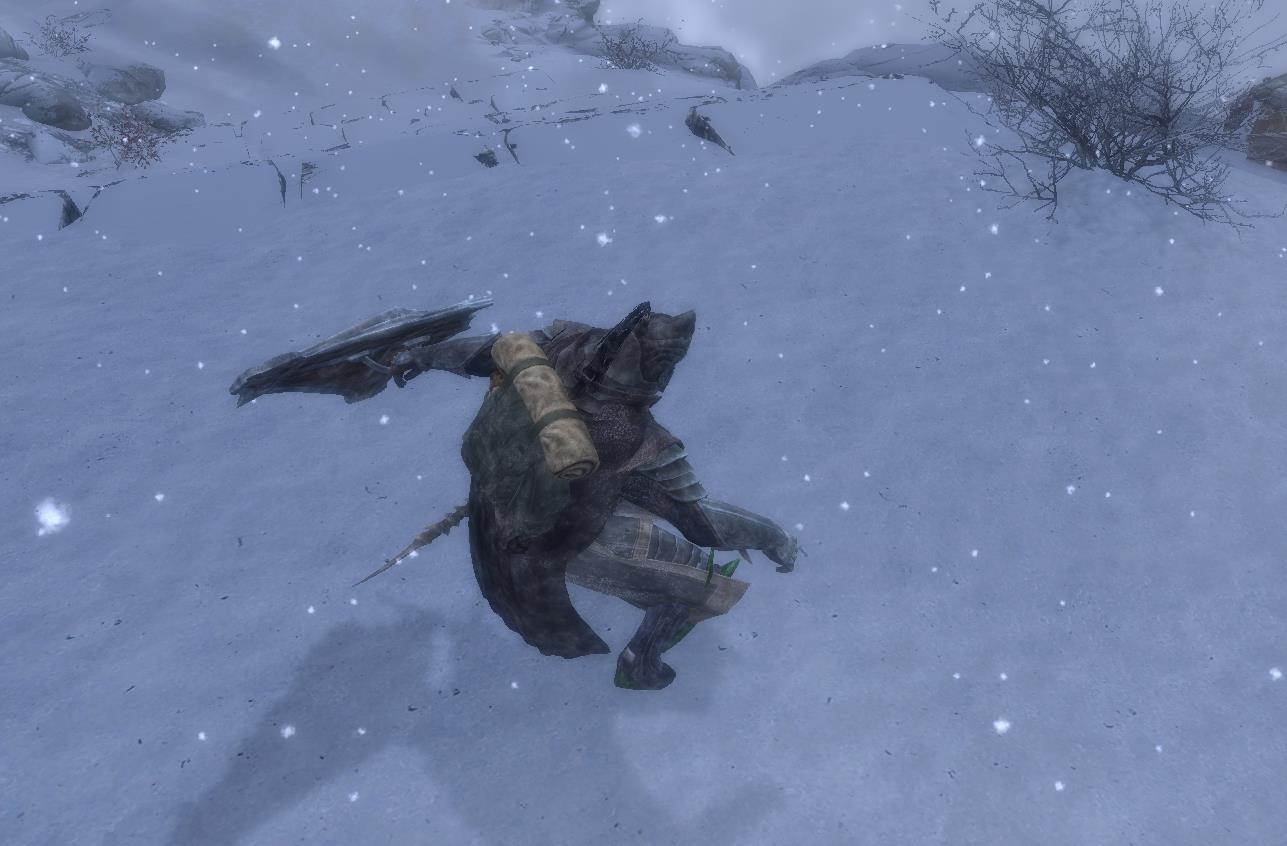 Скрипт отслеживает перевес и проигрывает пару анимаций, блокируя управление героем. После выбрасывания лишнего Довакин вновь встанет, проиграв пару анимаций.