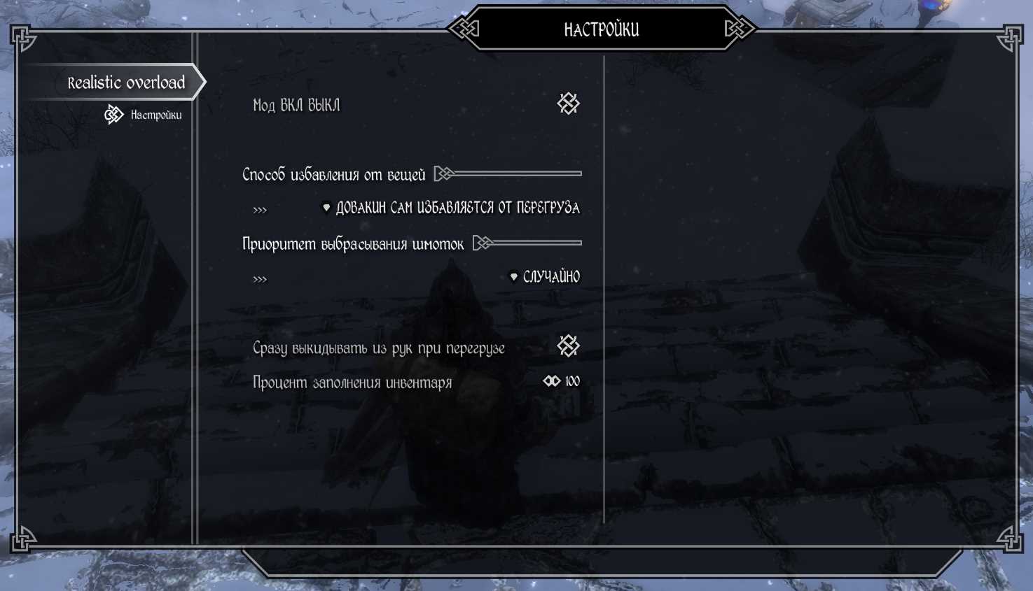 1.2 - Добавил в меню опцию выбора реагирования мода на процент заполнения инвентаря для совместимости с другими модами.