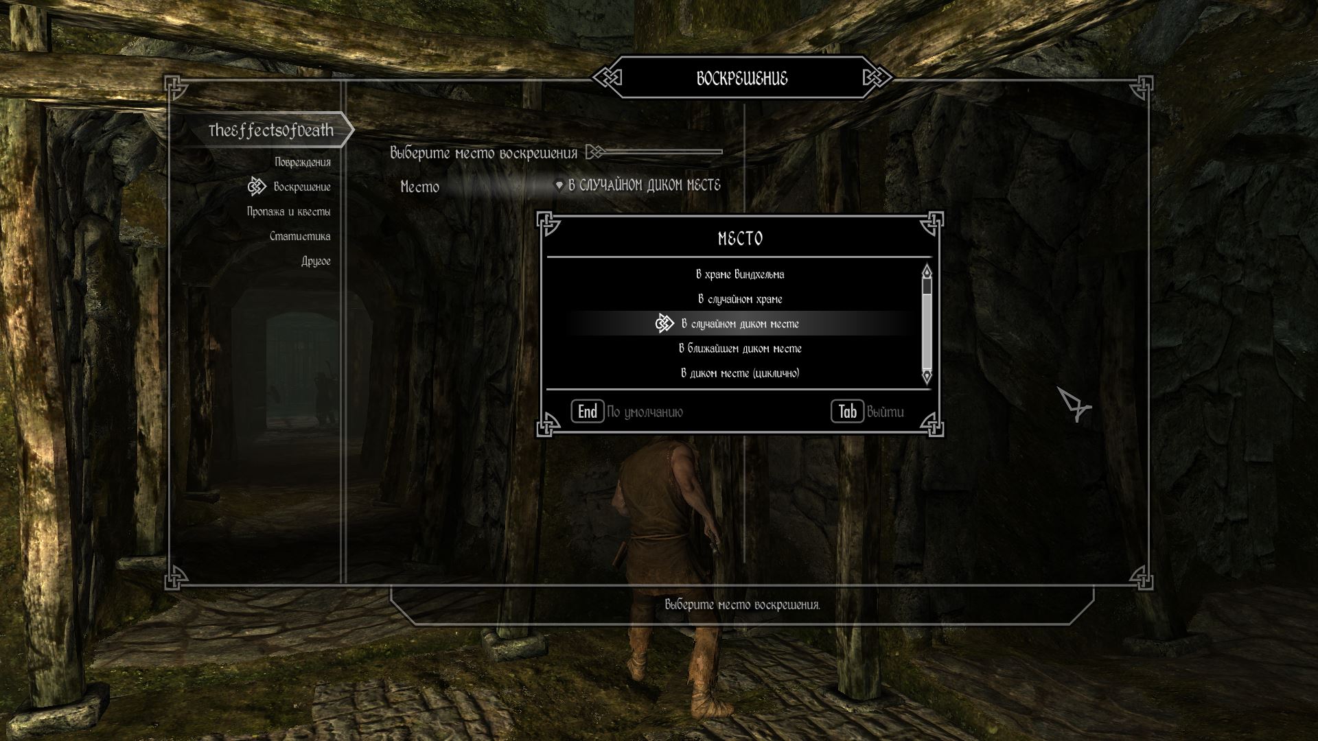 5. Ближайшая дикая местность из 20 точек пункта 4. Срабатывает, если померли в степях Тамриеля (т.е. на природе). Иначе работает пункт 4, ибо в интерьере невозможно определить дистанцию да точки респавна.