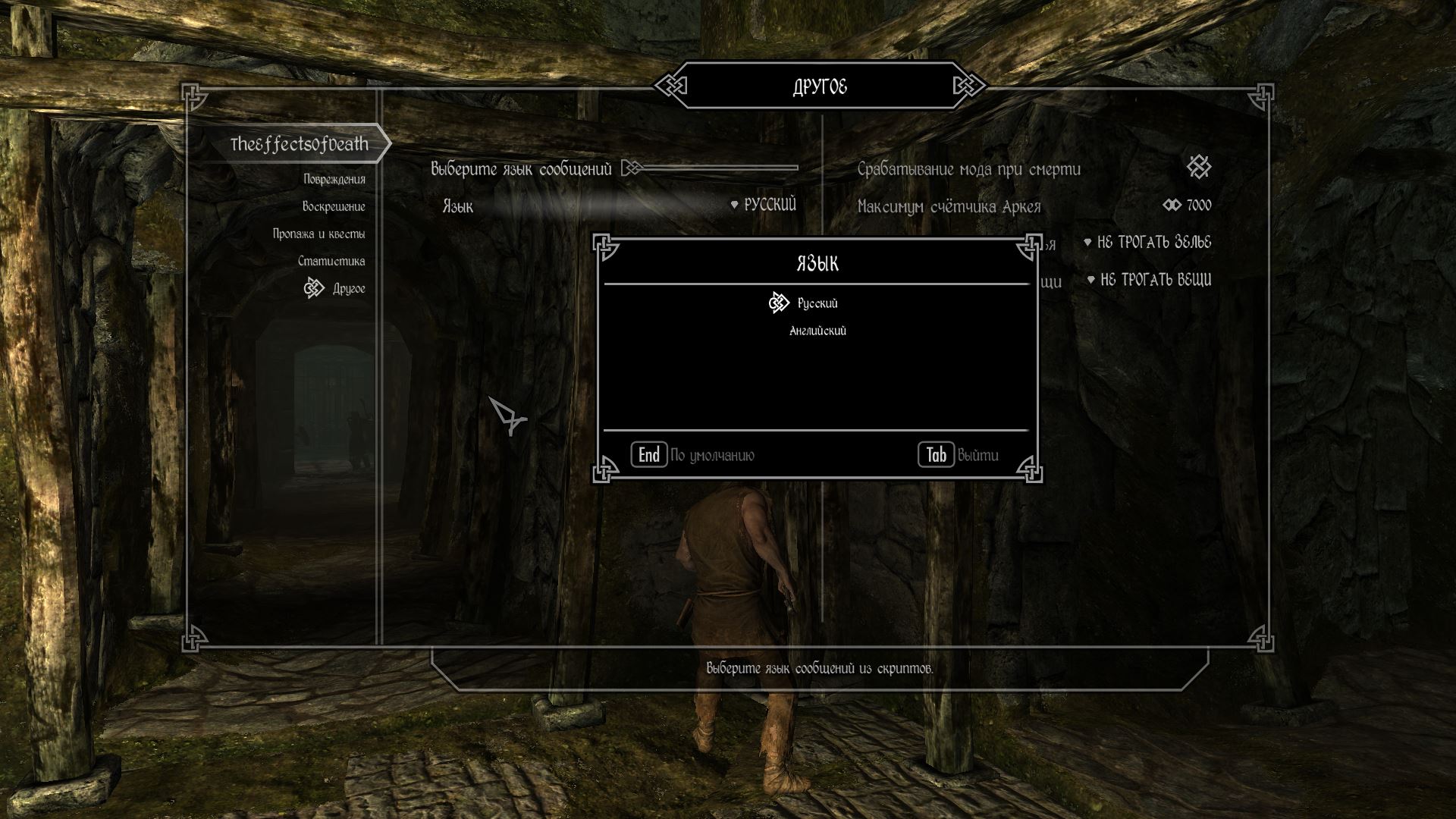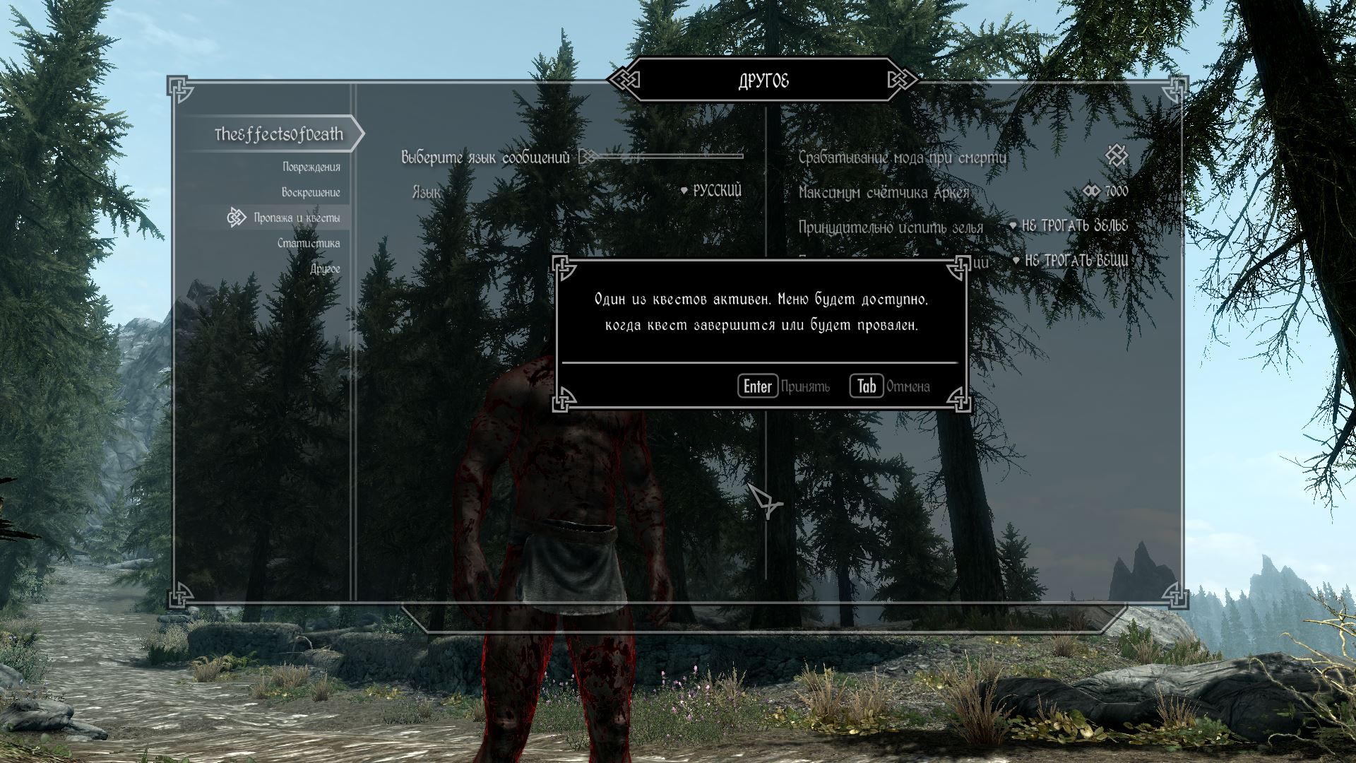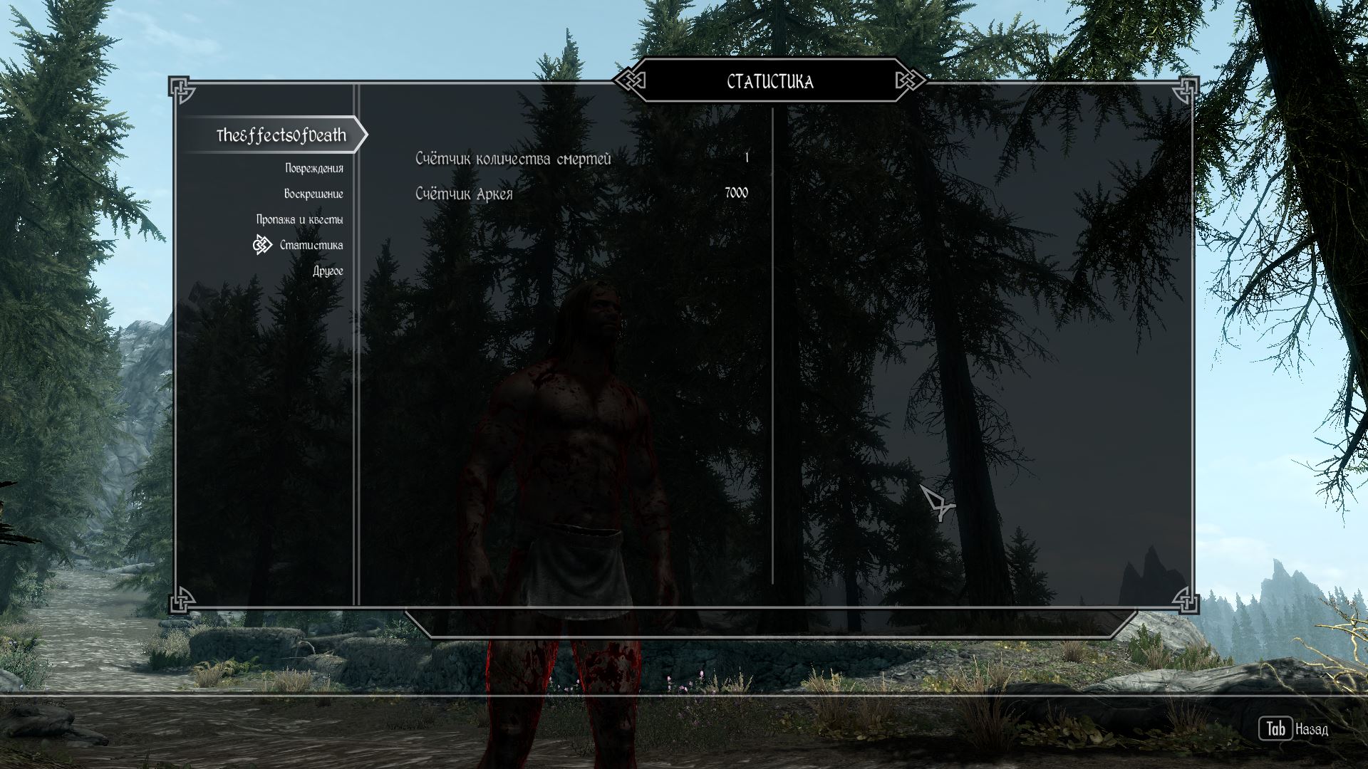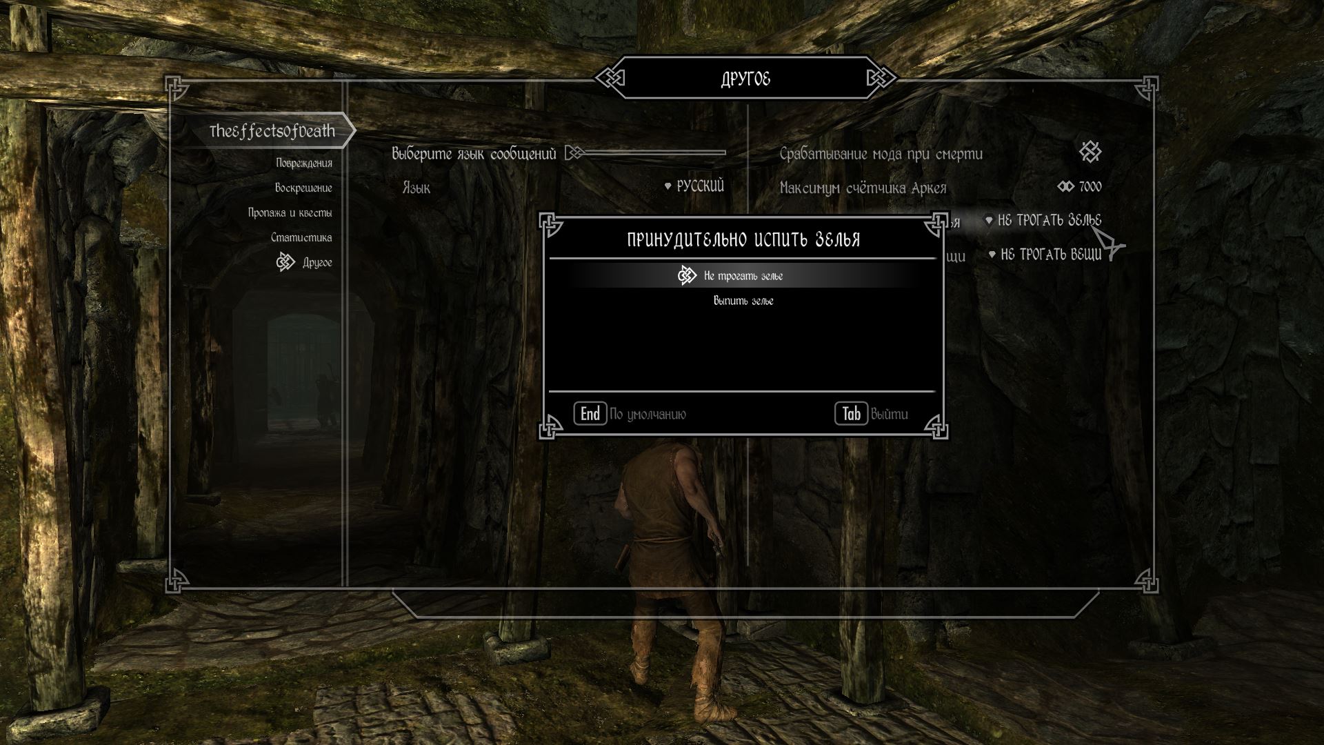 - происходит повреждение навыков игрока (всех, которые в ванильном скайриме со всеми DLC), в зависимости от установленных настроек мода