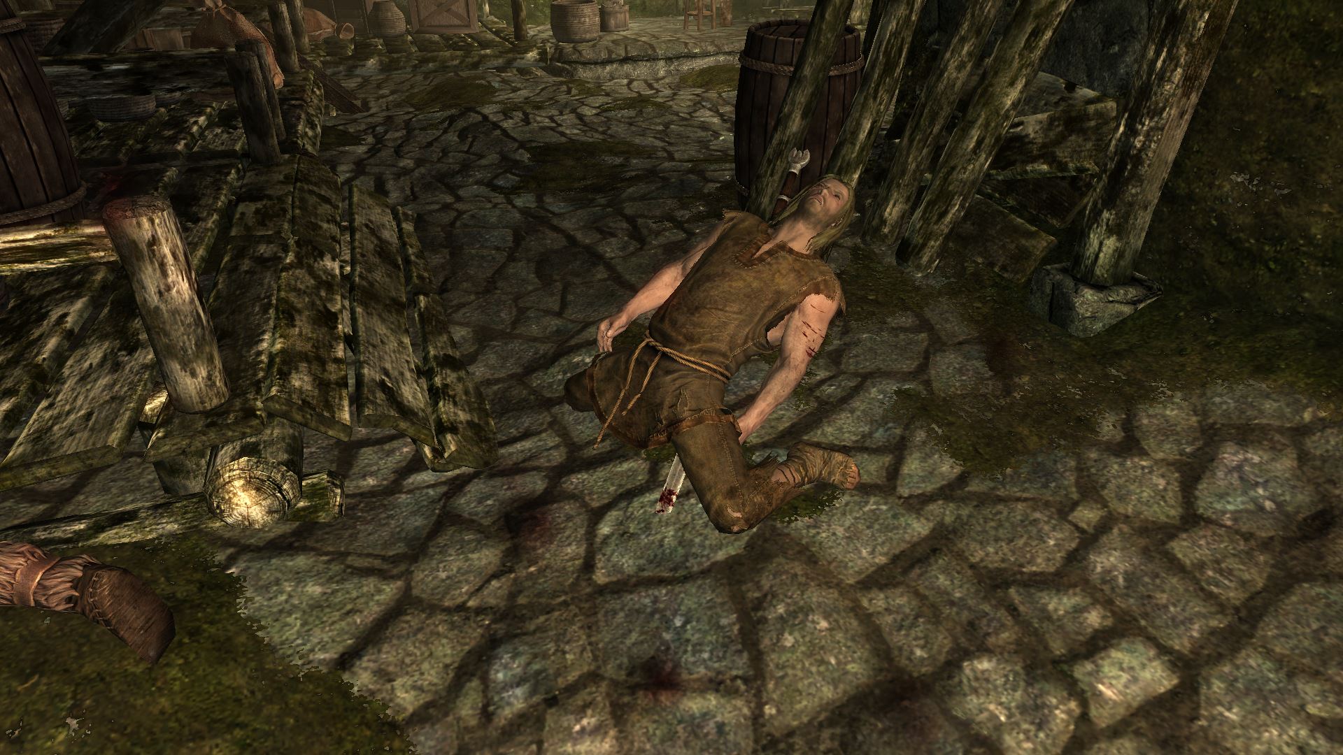 - При смерти игрока мы обычно загружаем сохранение и идём пытаться преодолеть трудности снова. Таким образом умирать в принципе абсолютно не страшно. Т.е. можно в одних трусах мордовать скайрим-живность и путем сохранился-загрузился пройти всю игру. Также можно в куче дорогой экипировки и с тоннами драгоценного хабара слиться под драконом, а потом спокойно загрузиться и пройти игру дальше.