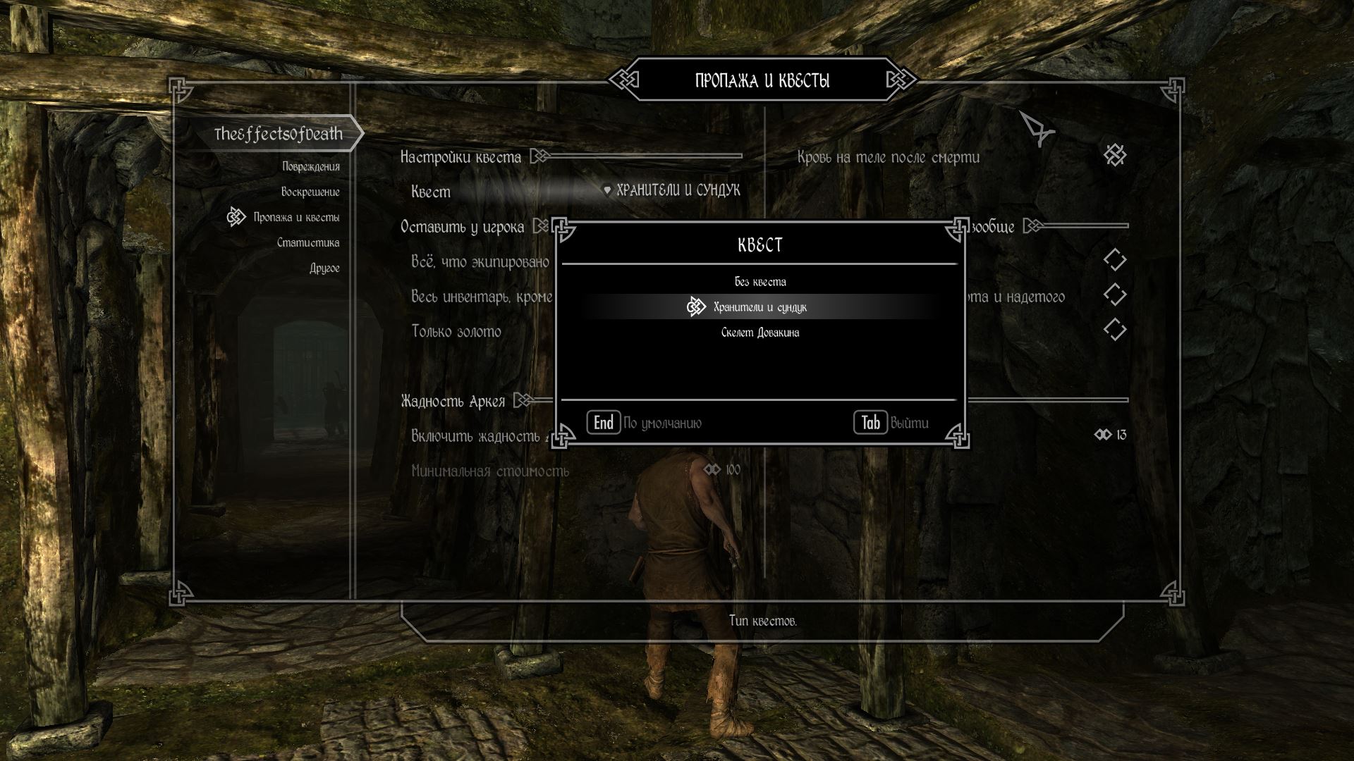 - без квеста (не оставленные вещи пропадают в никуда, зелья исцеления от проклятия Аркея также нет, жизнь - боль)