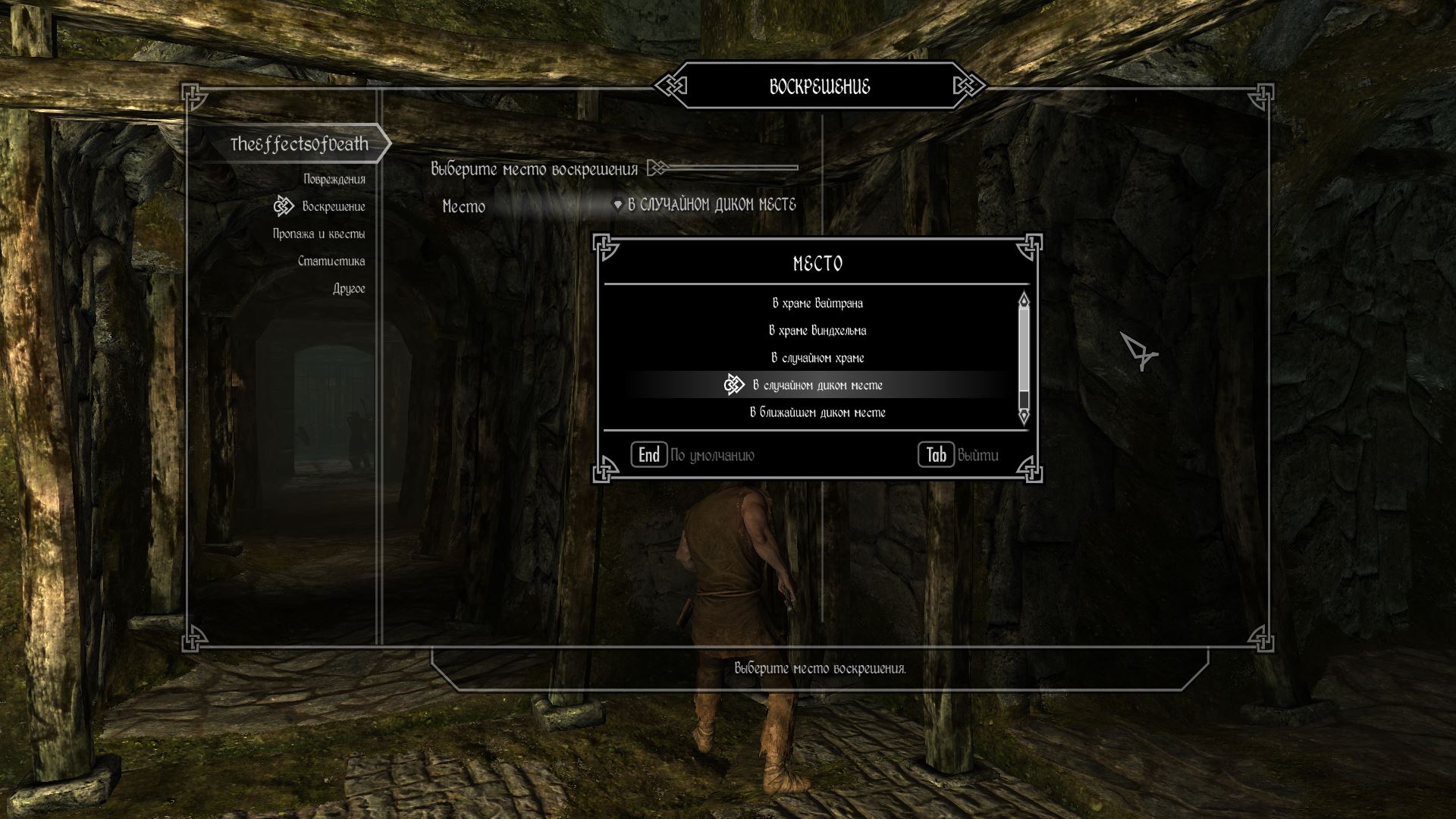 7. Если установлен мод Dark Souls Bonfires (www.nexusmods.com/skyrim/mods/30290), то появится выбор точек воскрешения у костров.