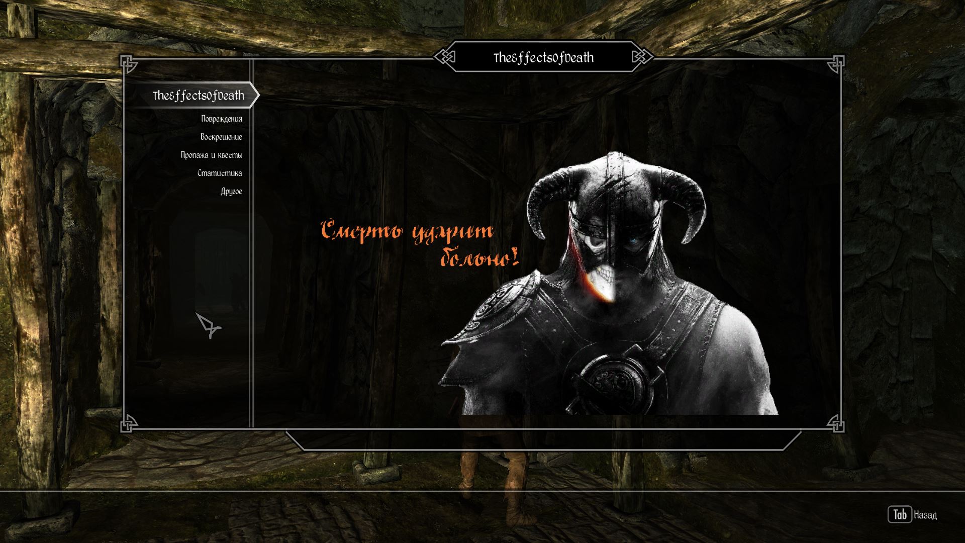 Идея мода была взята у мода NoDeathMod (www.nexusmods.com/skyrim/mods/29312/). Но автор мода давно на него забил. Кроме того у данного мода не всегда всё нормально работает из-за неправильно выбранных событий и условий в скриптах.