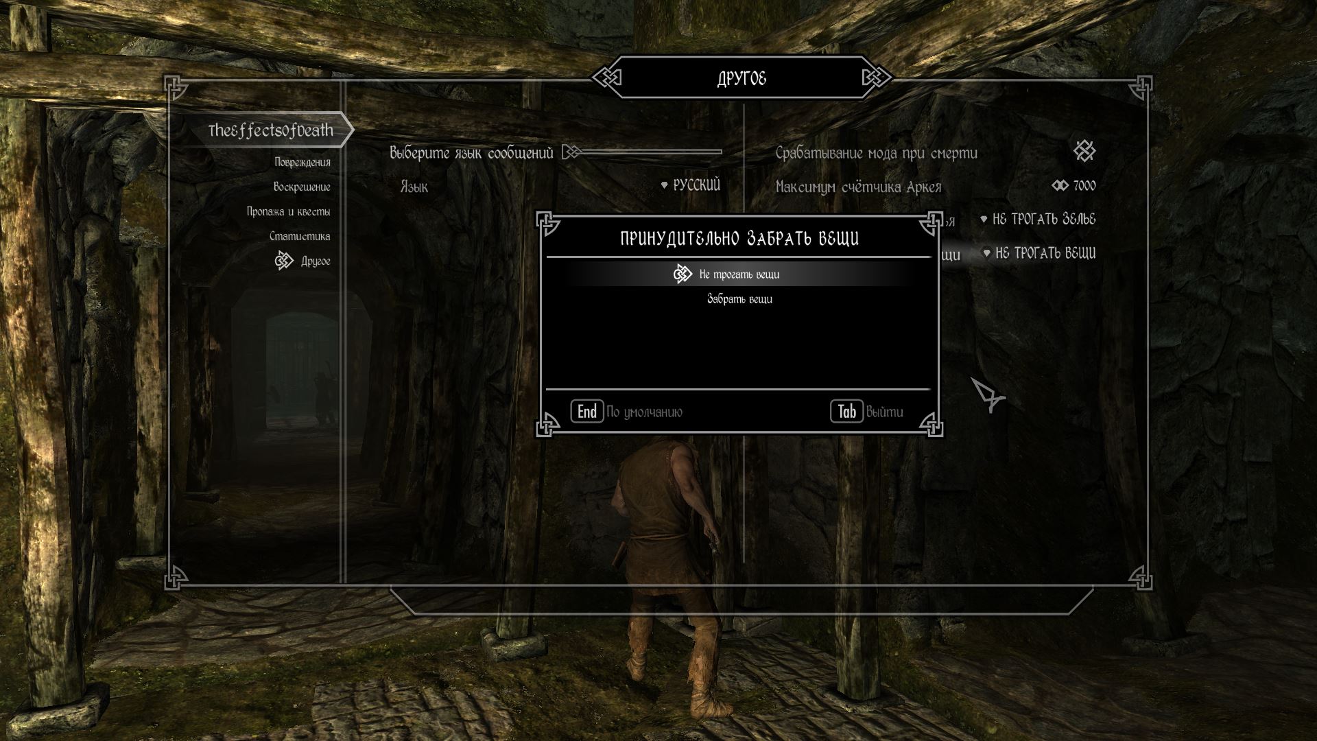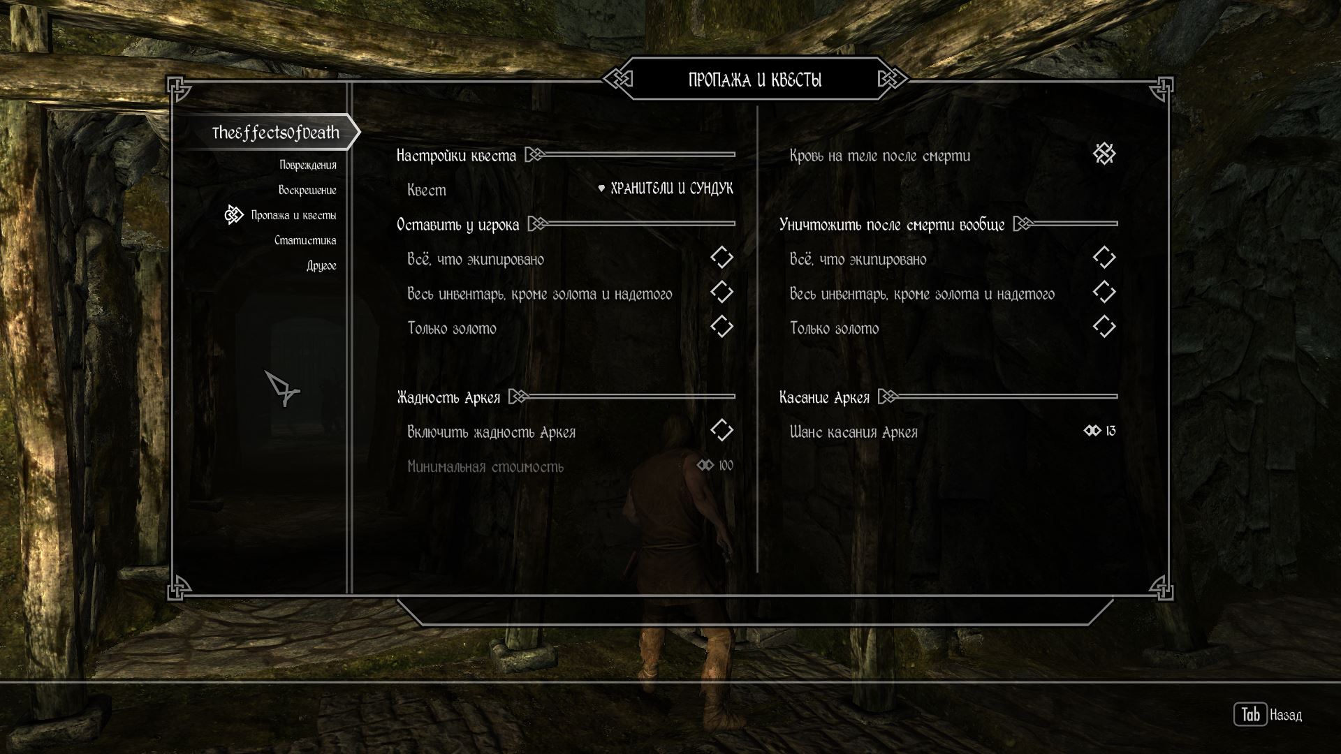 Опция "Касание Аркея" влияет на шанс полного уничтожения вещи независимо от выбранных настроек "Оставить". Т.е., когда ваши вещи после смерти снимаются с Довакина, Аркей может с определённым шансом её забрать себе.