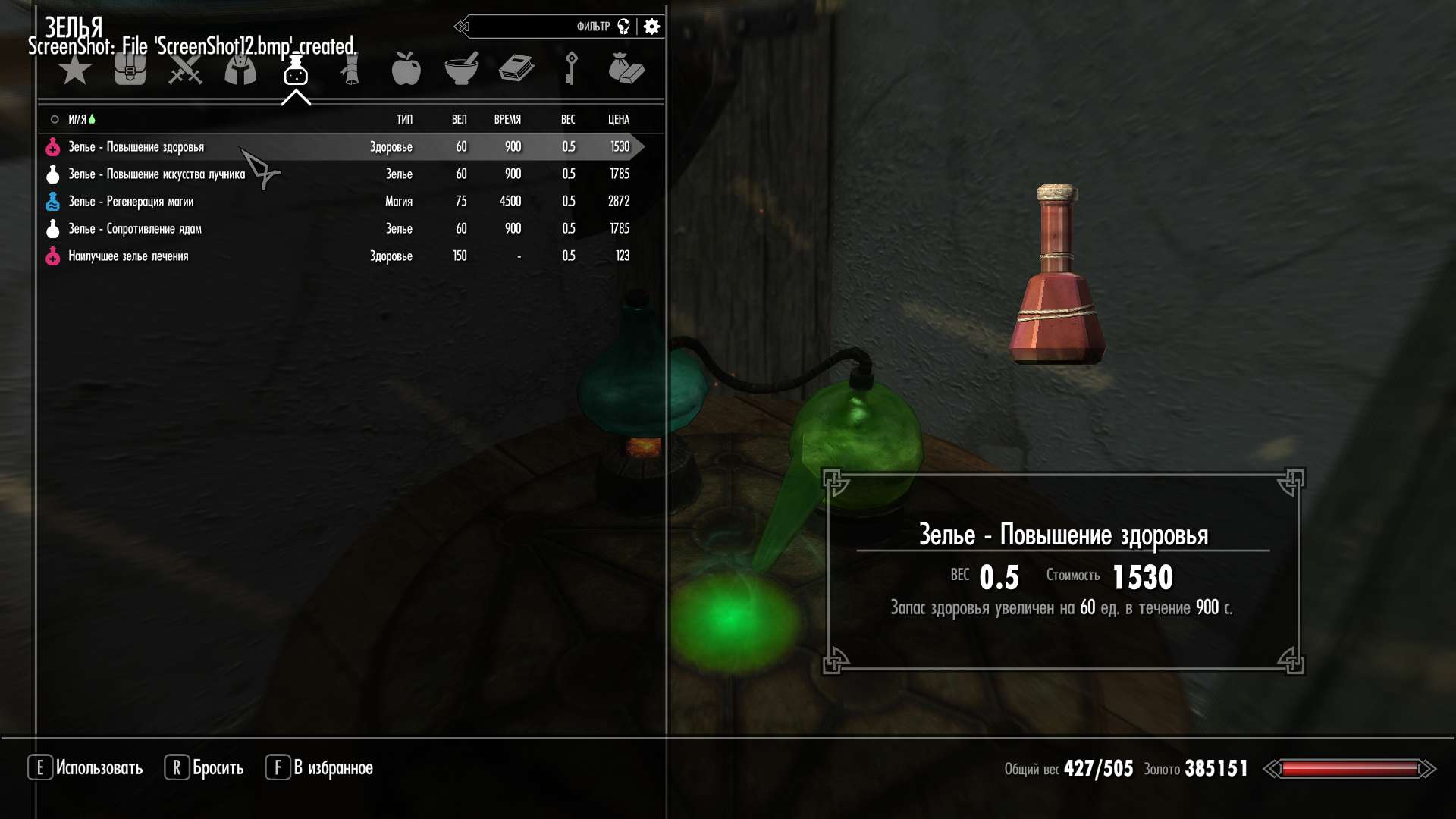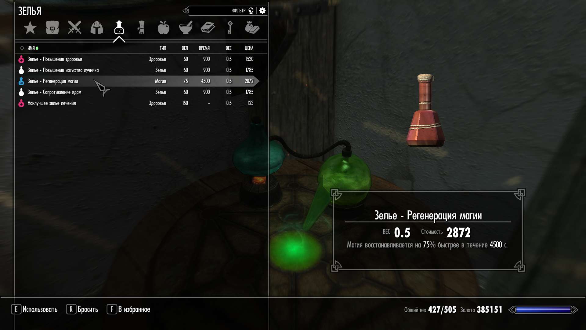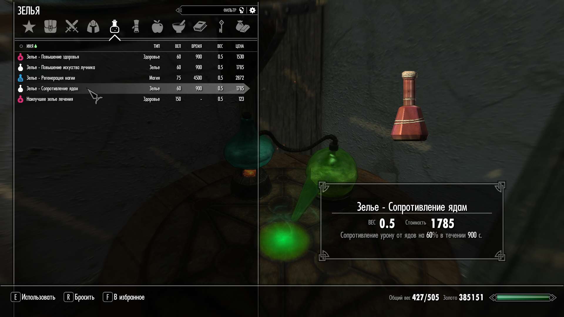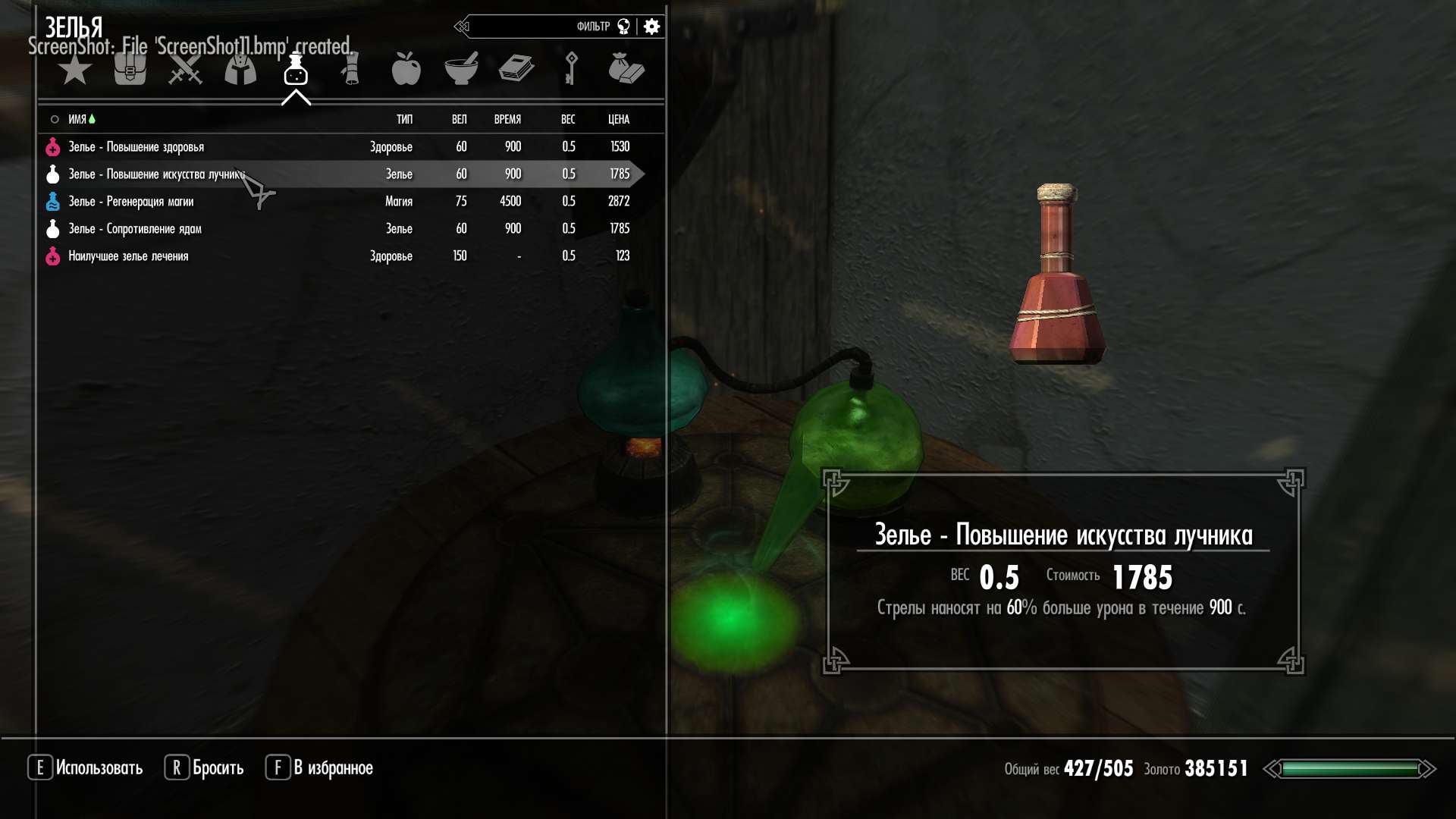 так что время действия создаваемого зелья напрямую зависит от навыка алхимии.