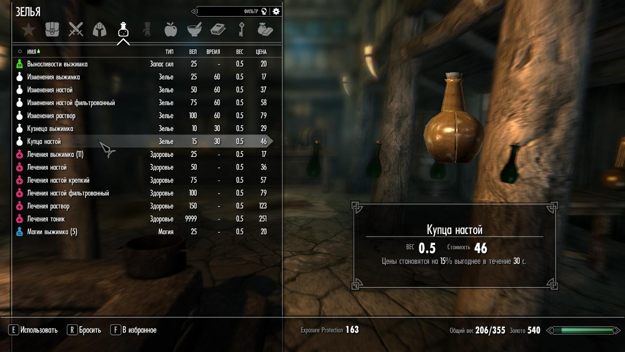 К сожалению, при переводе не вышло перенести идею автора о сортировке зелий и ядов в начале списка путём добавления пробелов перед названиями, но если вы привыкли к ванильной сортировке, то с этим проблем возникнуть не должно.