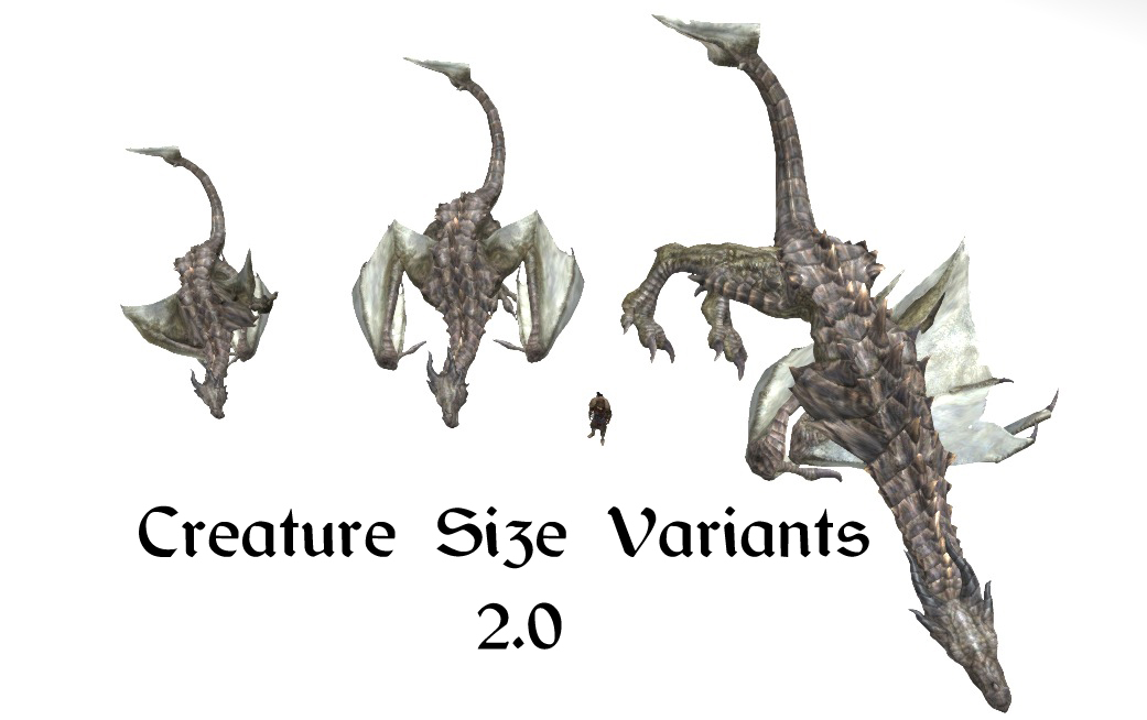 Этот мод должен добавить разнообразия существам Скайрима, динамически и случайным образом изменяя их размер. Мод также будет увеличивать или уменьшать их здоровье и наносимый ими урон зависимо от того, в какую сторону изменится их размер (эти функции настраиваются в меню конфигурации модов).