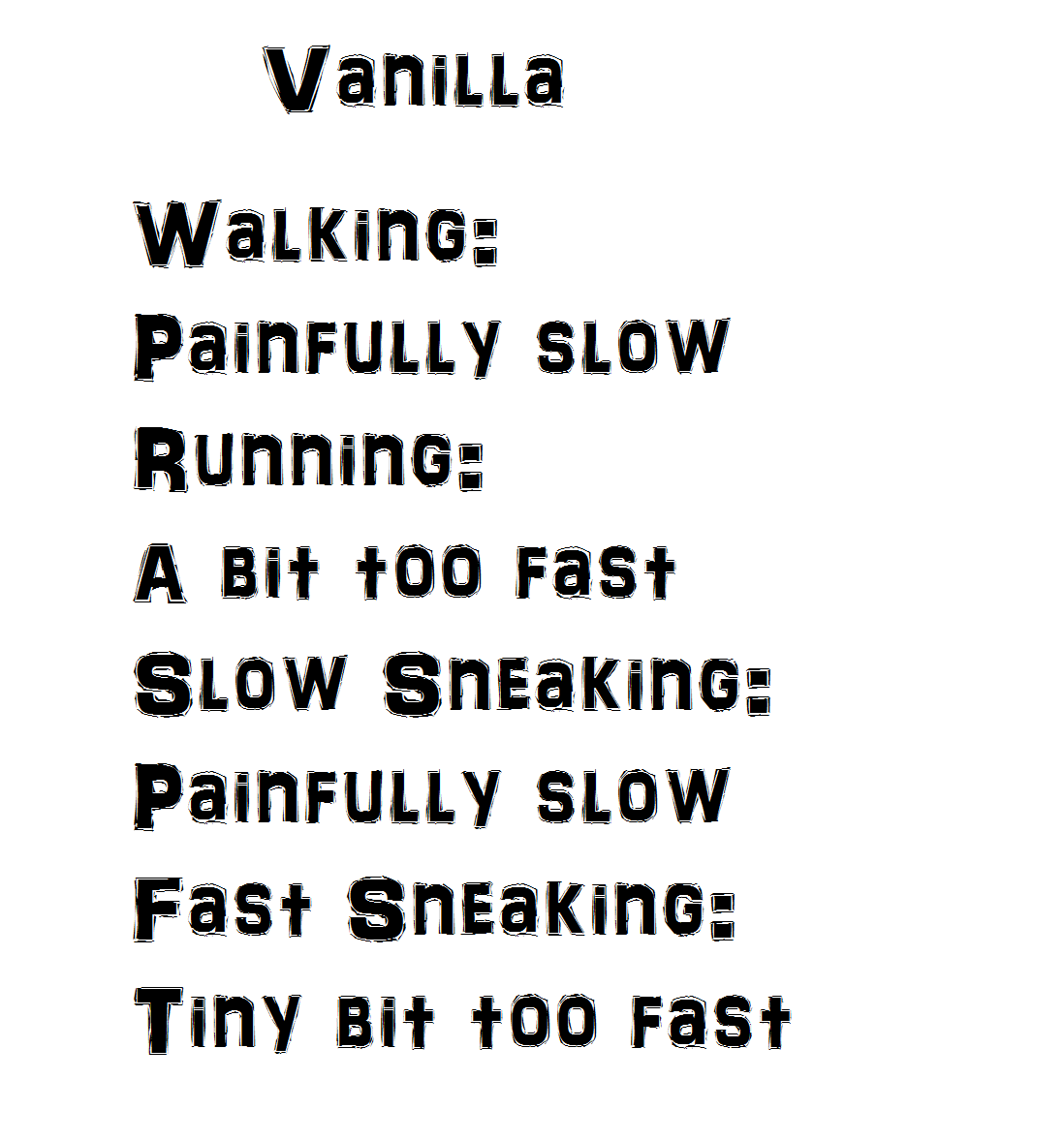 - Ванильное медленное подкрадывание (с зажатым shift) было очень медленным;