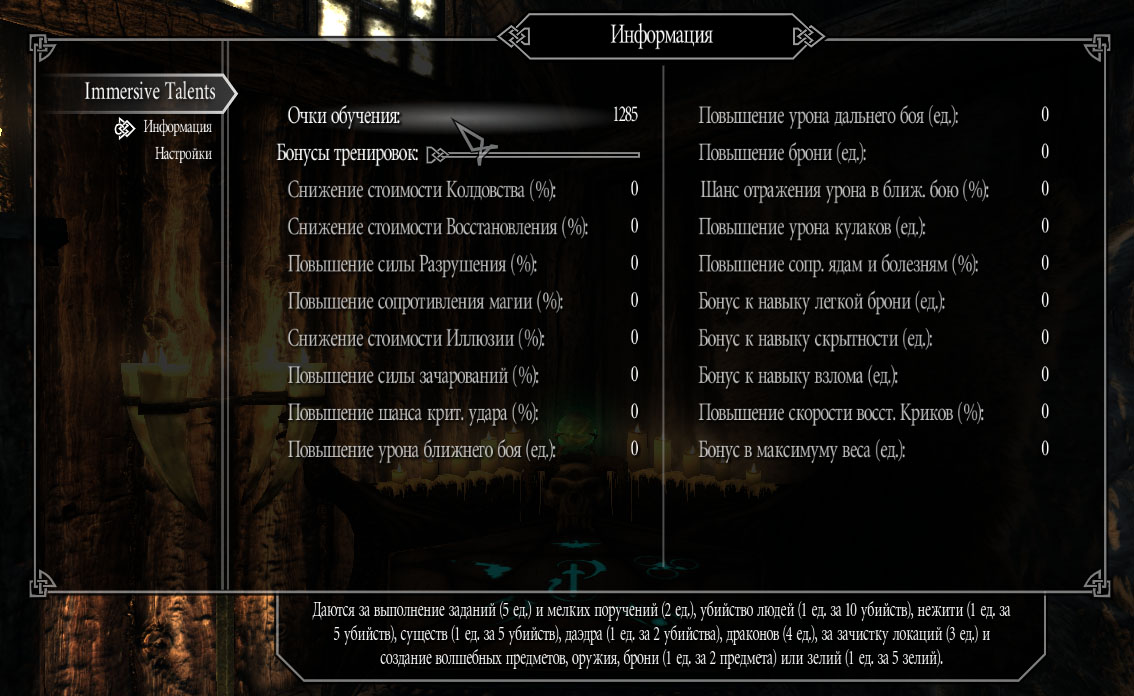- Никаких волшебно появляющихся талантов у Довакина после повышения уровня. Теперь их нужно зарабатывать.