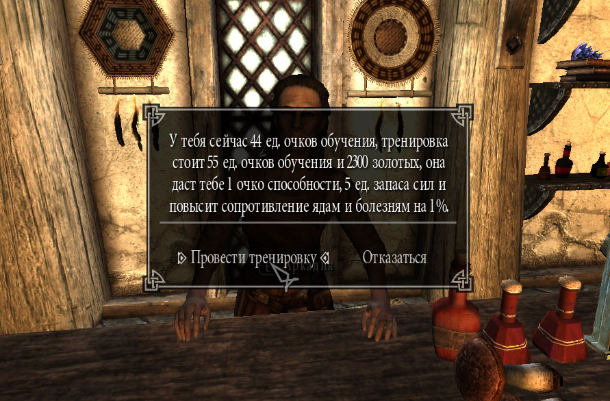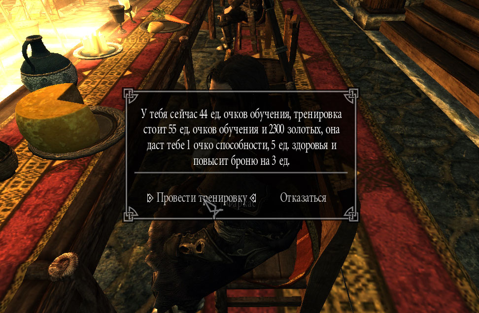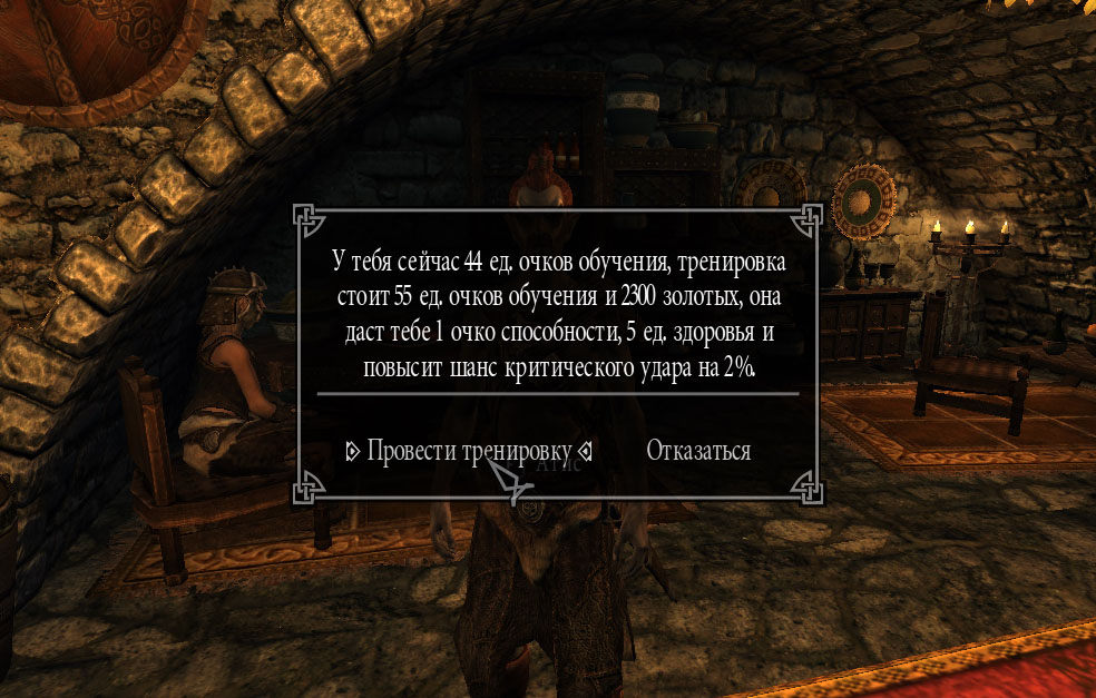 - Тренировка даёт 1 очко способности, повысит одну из трёх характеристик и даст дополнительный бонус (в зависимости от учителя). К примеру, тренировка у учителя тяжёлой брони повысит здоровье на 5 ед. и броню на 3 ед.