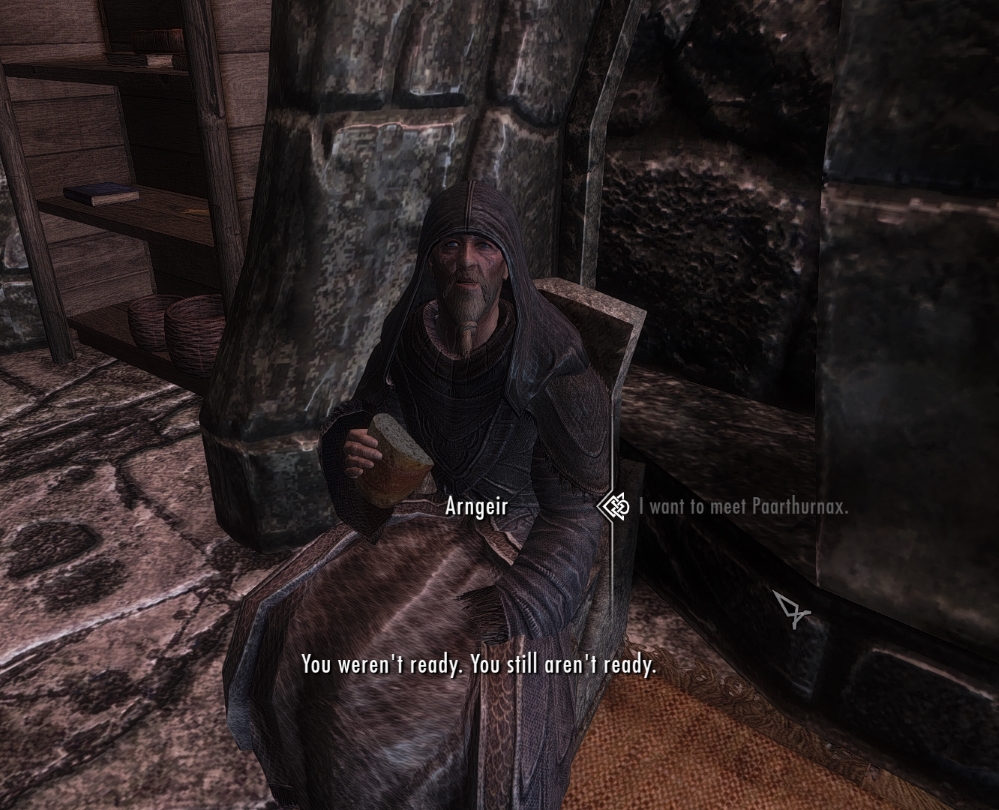Это, конечно, утрировано, но с этим модом Арнгейр действительно заявит Вам, что Вы не готовы ко встрече с Партурнаксом, если не будет выполнен ряд условий.