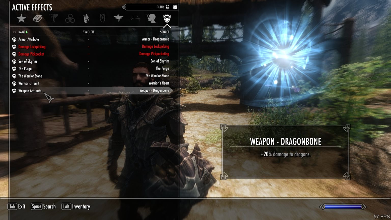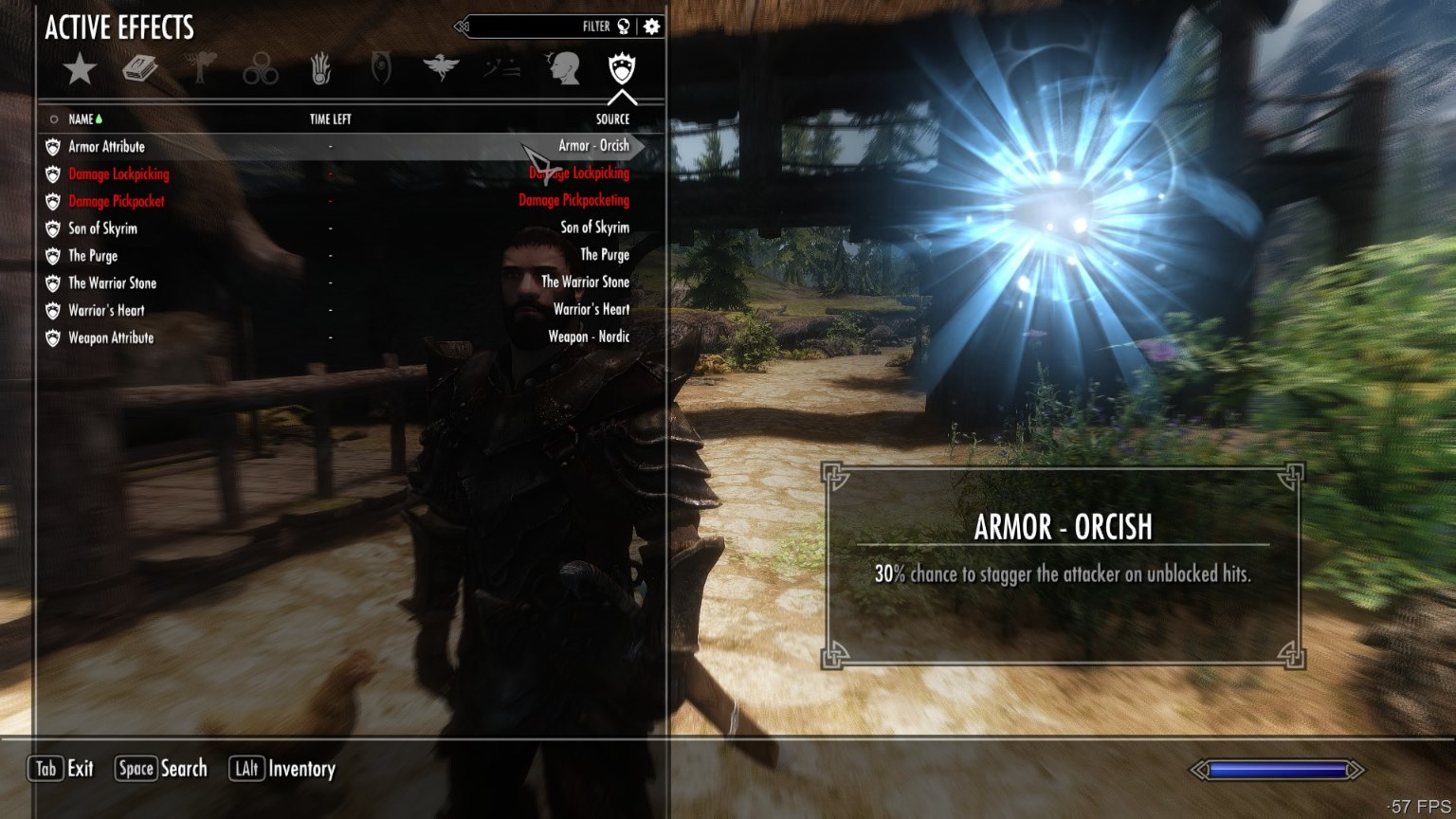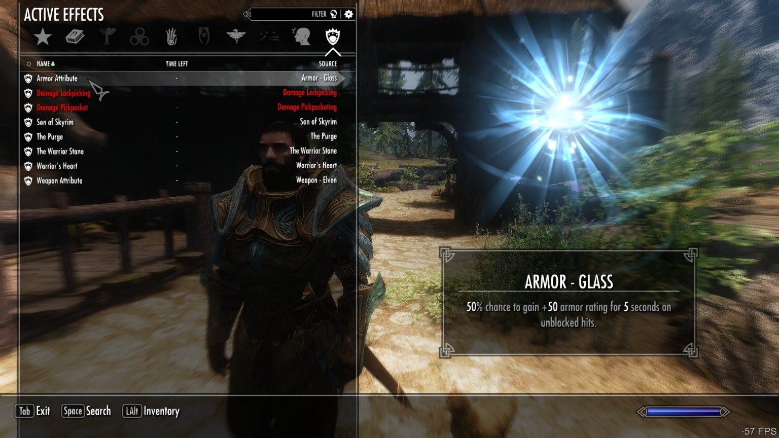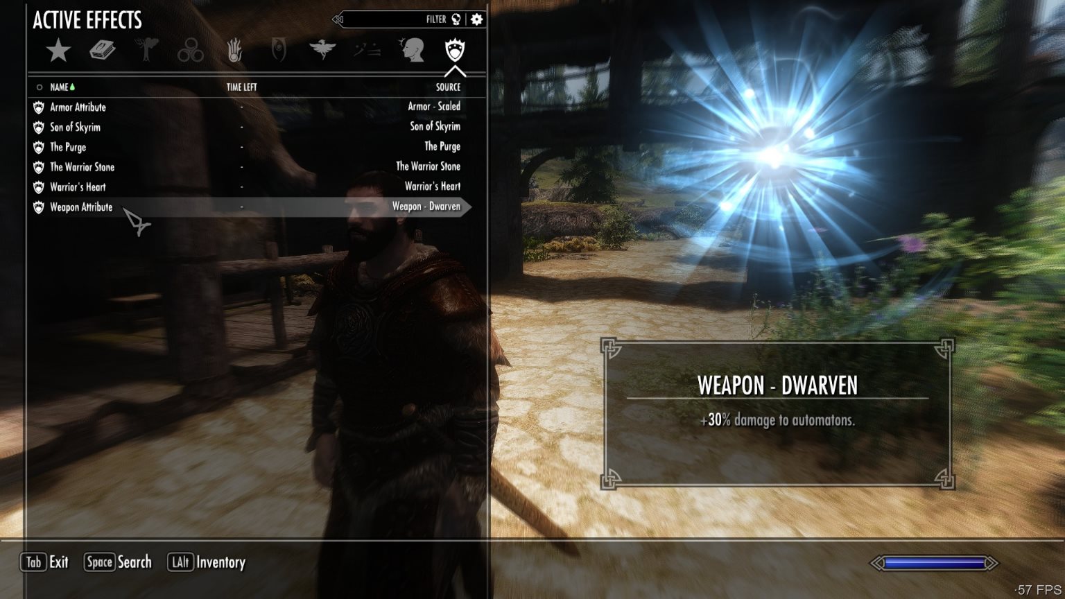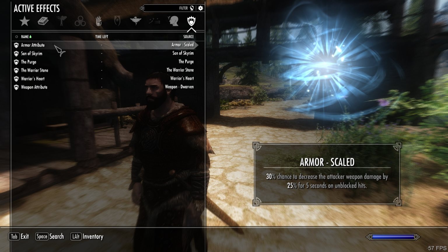 Доспехи станут отличаться не только показателями рейтинга брони, но и защитой от элементального урона, влиянием на скорость восстановления запасов магии и сил, а также на скорость передвижения, исходя из их веса. Каждый доспех заимеет разные величины упомянутых защит, нагрузки на персонажа, это динамически рассчитывается в зависимости от базового рейтинга брони, веса и материала предмета. Также распространяется и на NPC.