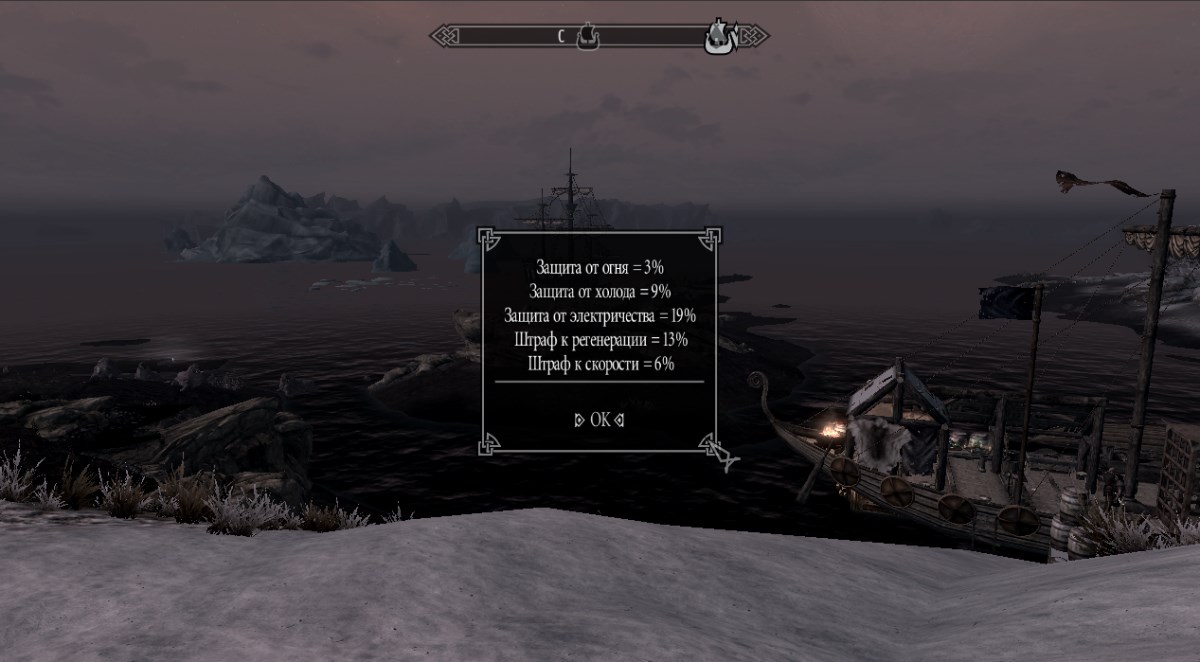 Броня: 5% шанс в секунду восстановить 50 ед. здоровья, запаса сил или магии, будучи ночью под открытым небом. Удары, если не были заблокированы, имеют 20% шанс вызвать испуг у атакуемого на 5 сек.